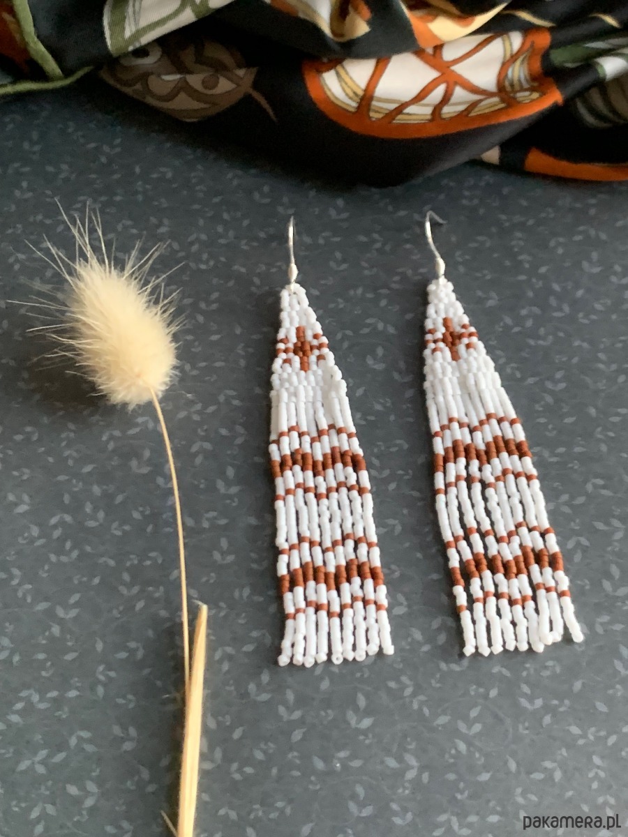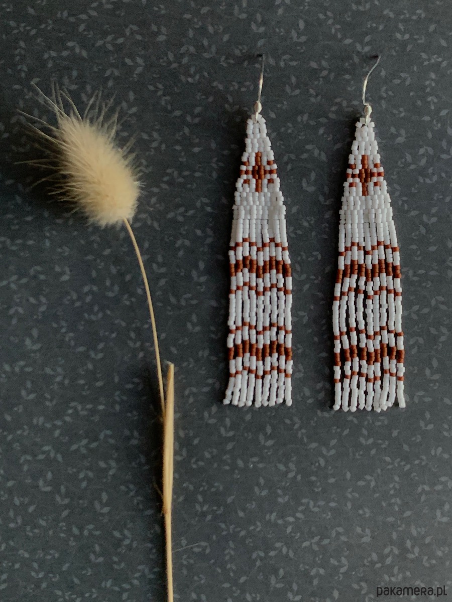 Koraliki w kolorze ciepłego jasnego brązu i śnieżnej bieli. Kolor w rzeczywistości może się różnić w zależności od ustawień monitora.