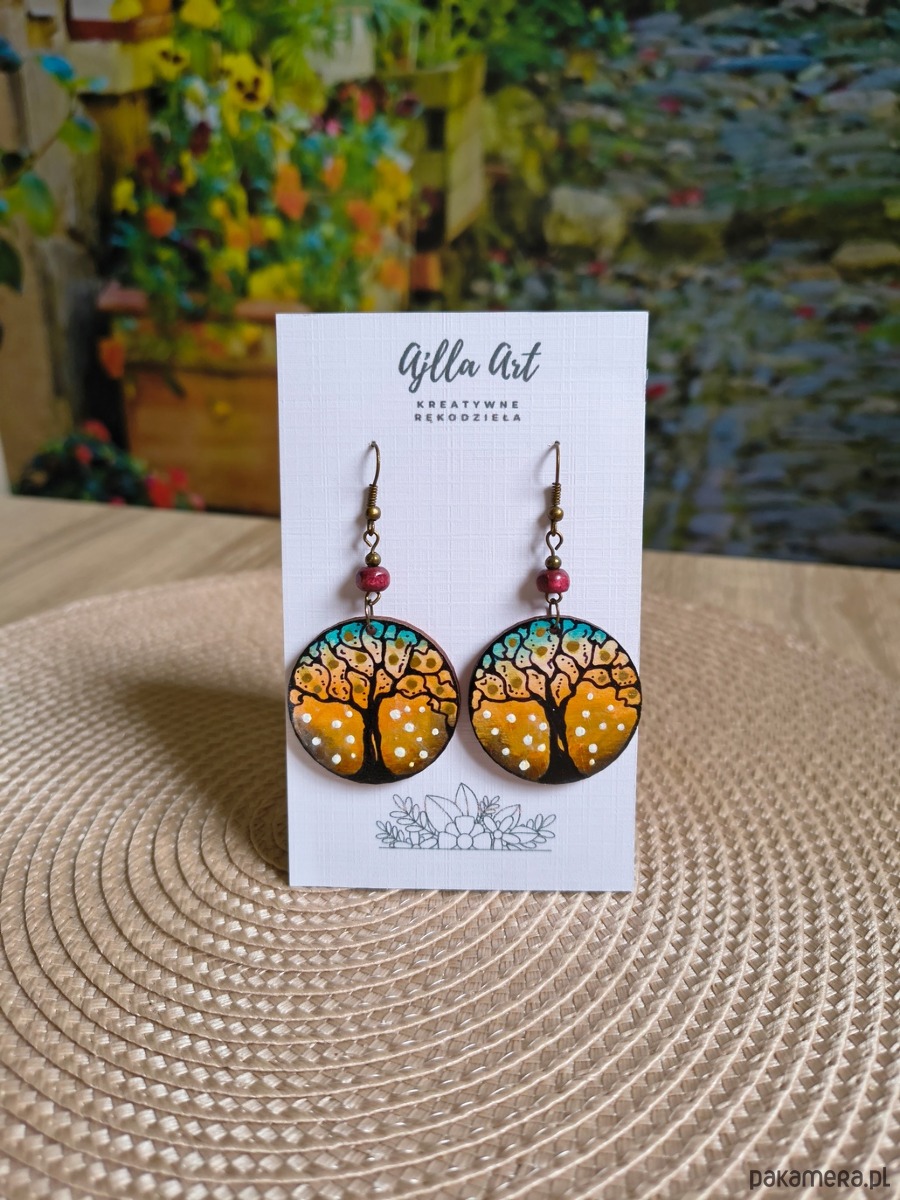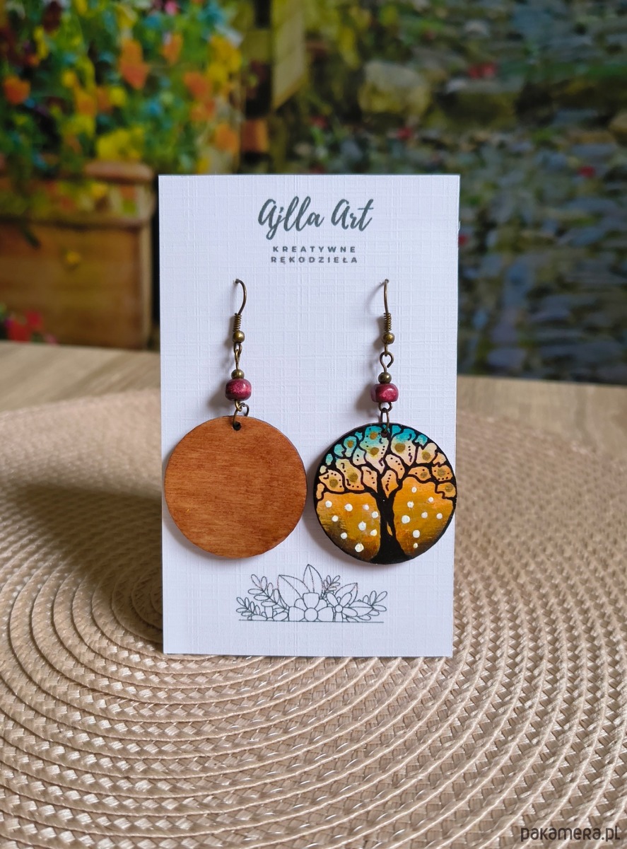 Drewniane kolczyki malowane ręcznie farbami akrylowymi idealne na co dzień.