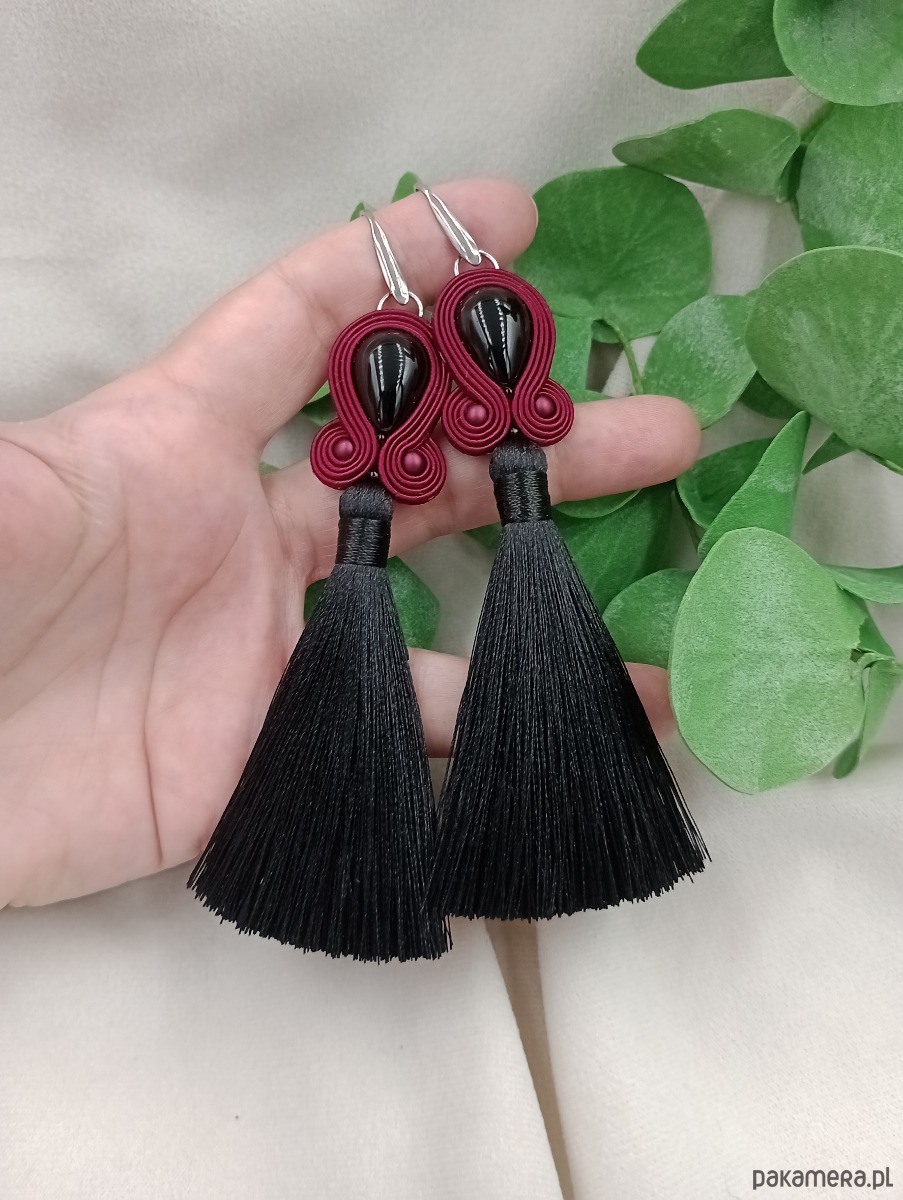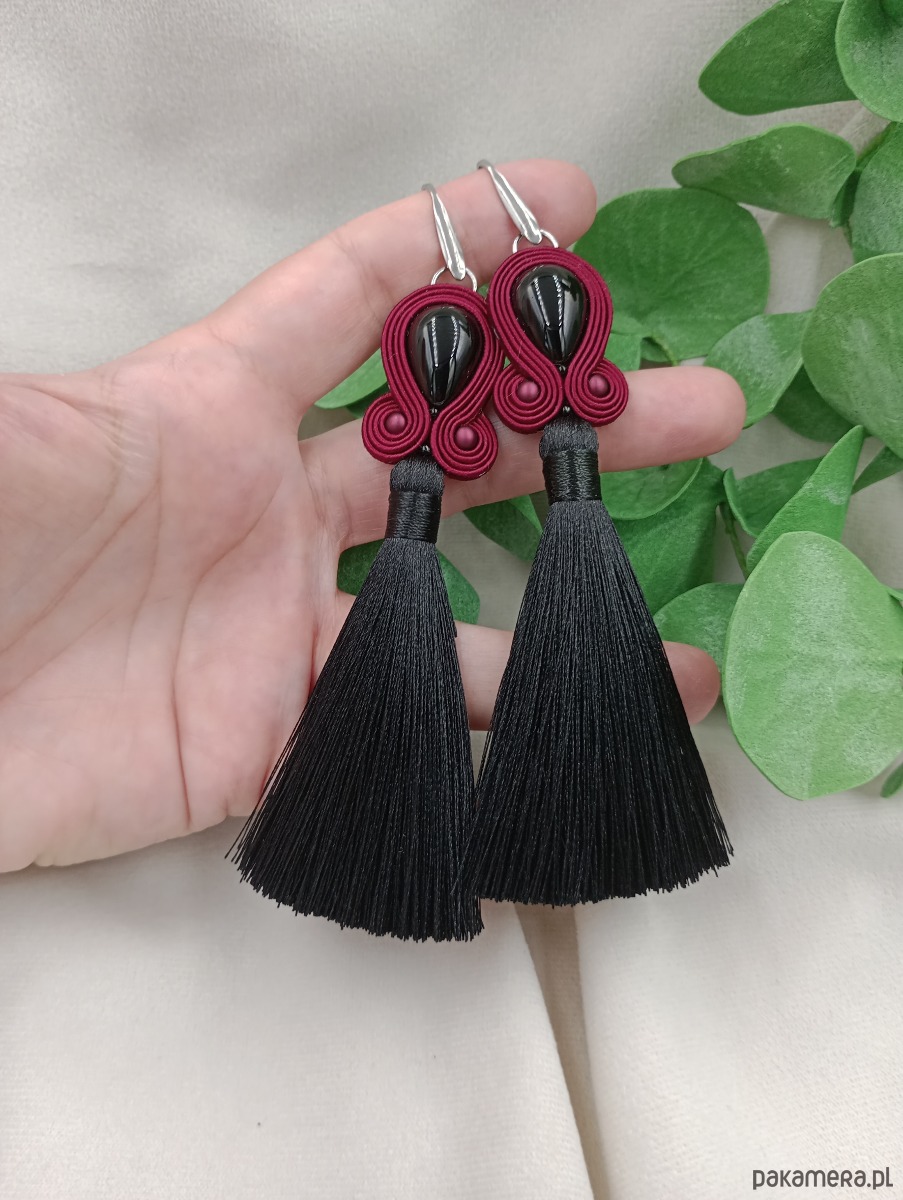 Kolczyki bordowe czarne z onyksami chwosty, sutasz