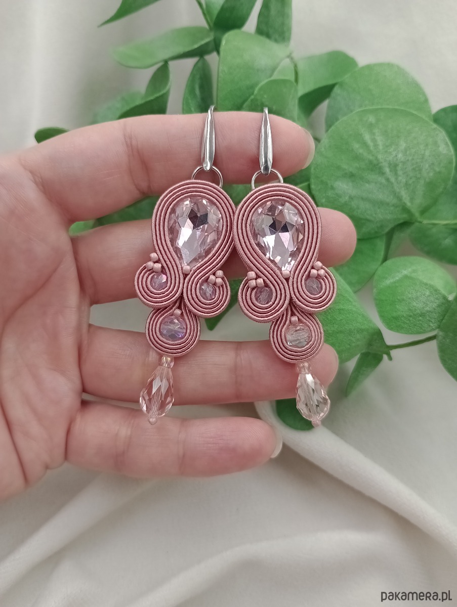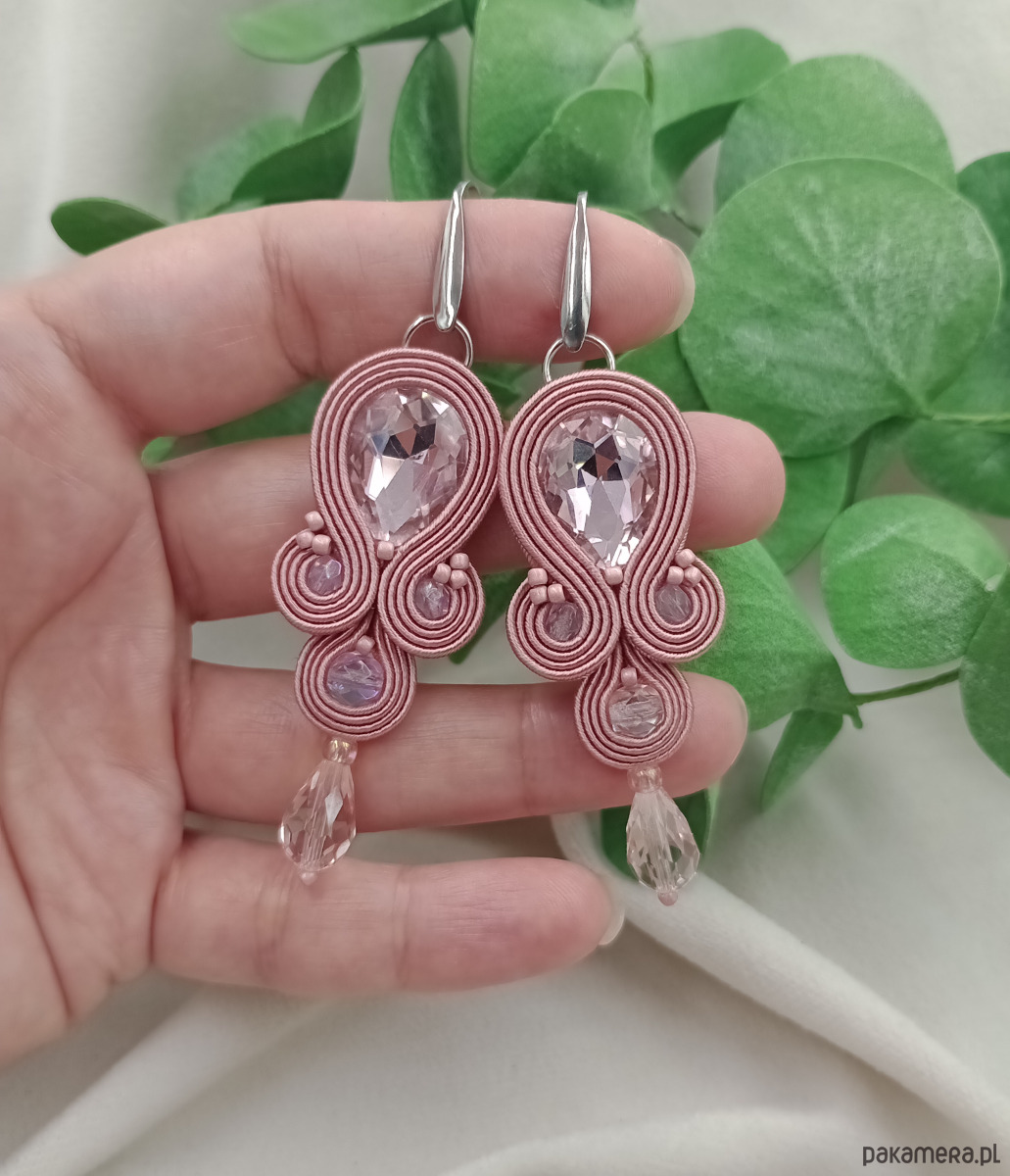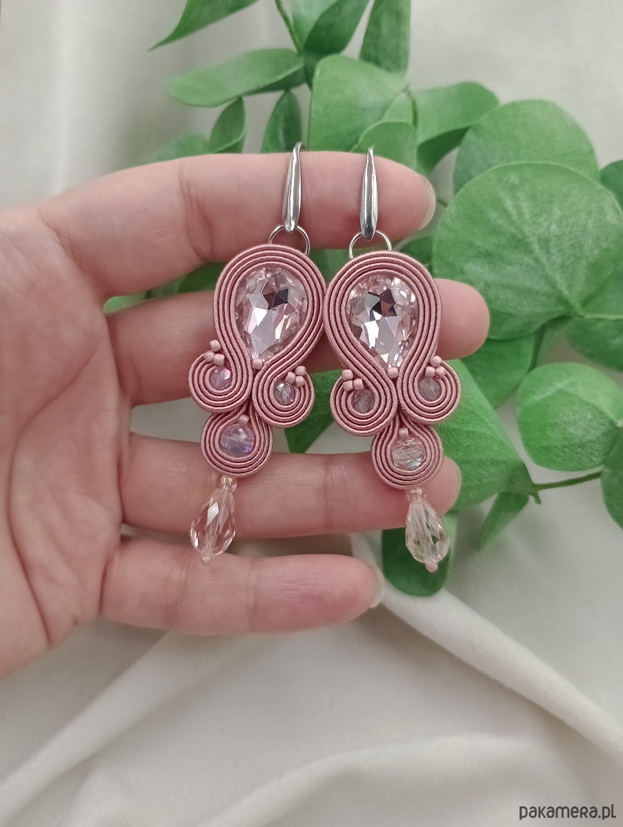 Kolczyki w kolorze zgaszonego brudnego różu dedykowane wielkim wyjściom, przyjęciom, niebanalnym stylizacjom ale przede wszystkim Kobietom kochającym kolorowe dodatki - ręcznie robiona, z jedwabnego włoskiego sutaszu i dodatków najwyższej jakości - w mojej małej pracowni z designerskimi tekstylną biżuterią.