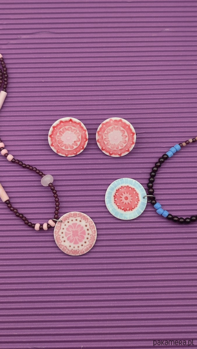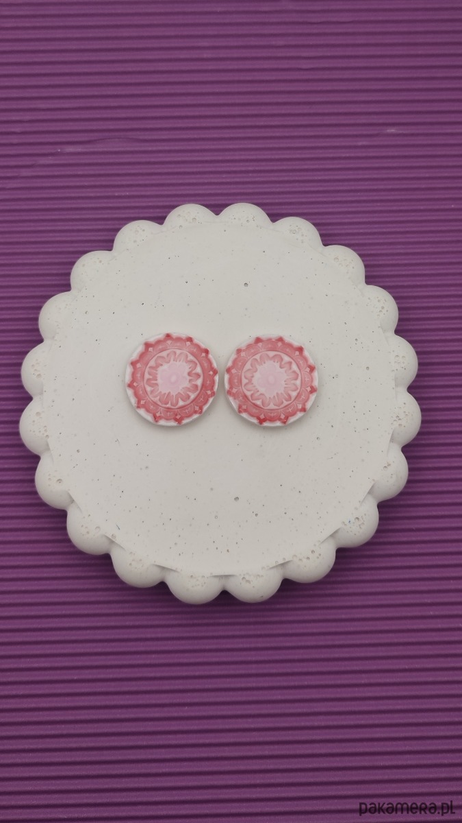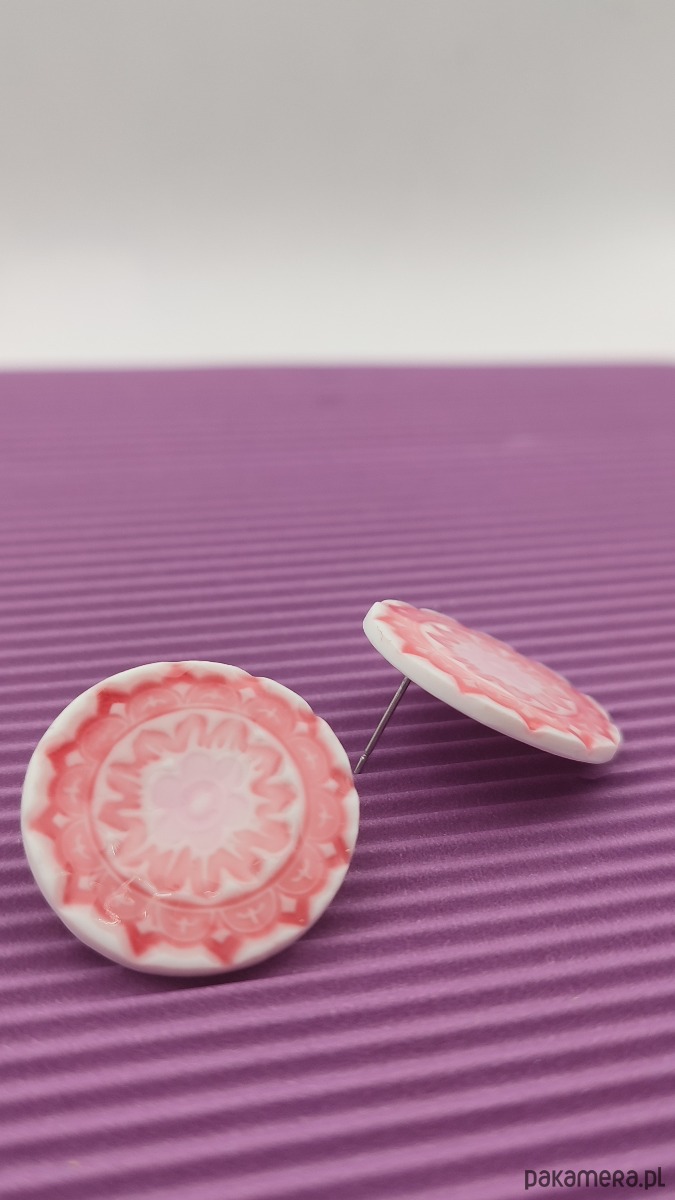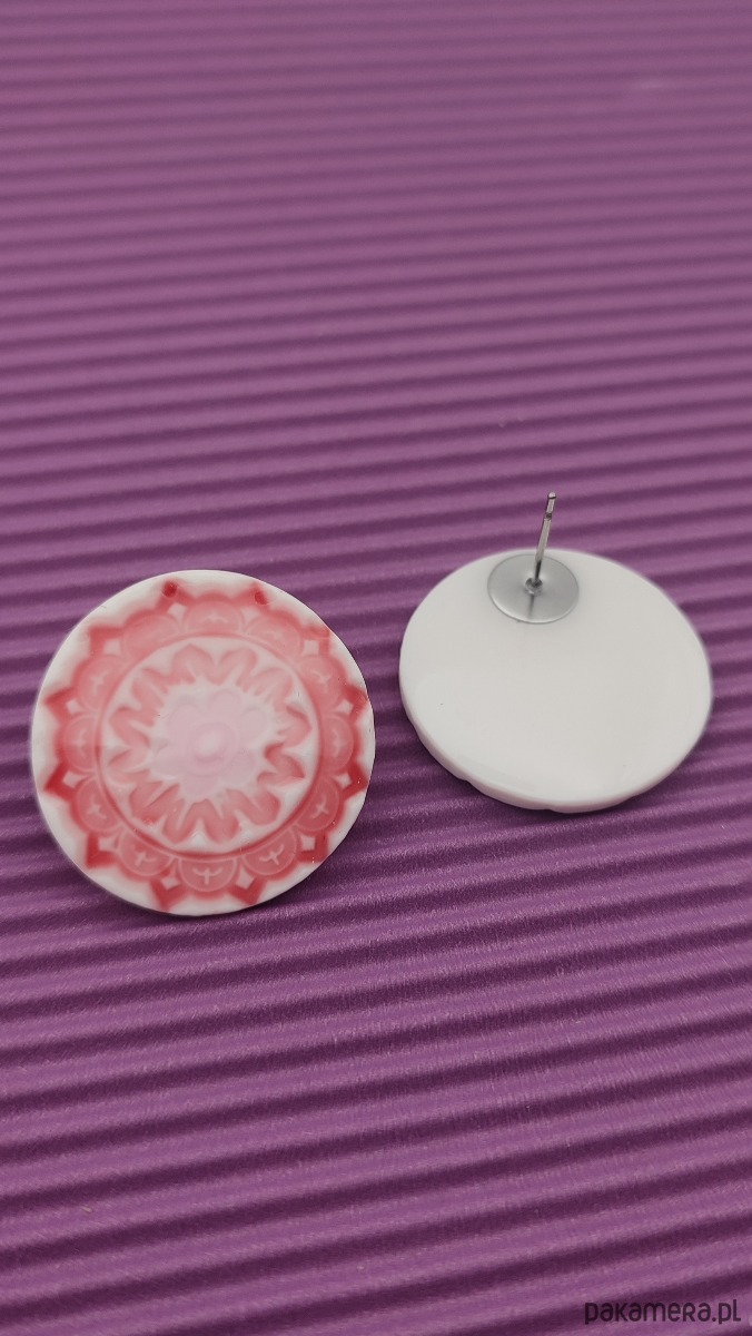 Delikatne, a jednocześnie wyraziste – kolczyki, które wyglądem przypominają miniaturowe ceramiczne medaliony. Powstały z gliny polimerowej, ręcznie pokrytej barwioną żywicą, dzięki czemu każdy egzemplarz ma niepowtarzalny charakter i subtelny połysk.