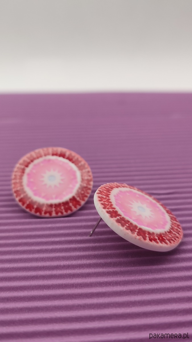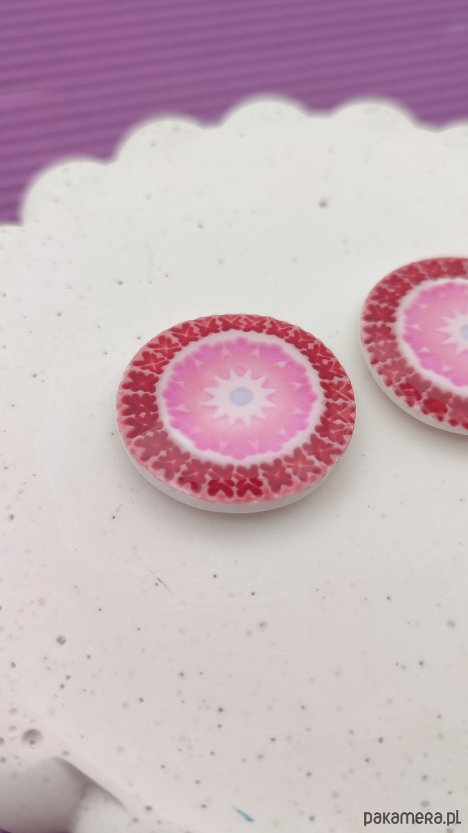 Delikatne, a jednocześnie wyraziste – kolczyki, które wyglądem przypominają miniaturowe ceramiczne medaliony. Powstały z gliny polimerowej, ręcznie pokrytej barwioną żywicą, dzięki czemu każdy egzemplarz ma niepowtarzalny charakter i subtelny połysk.