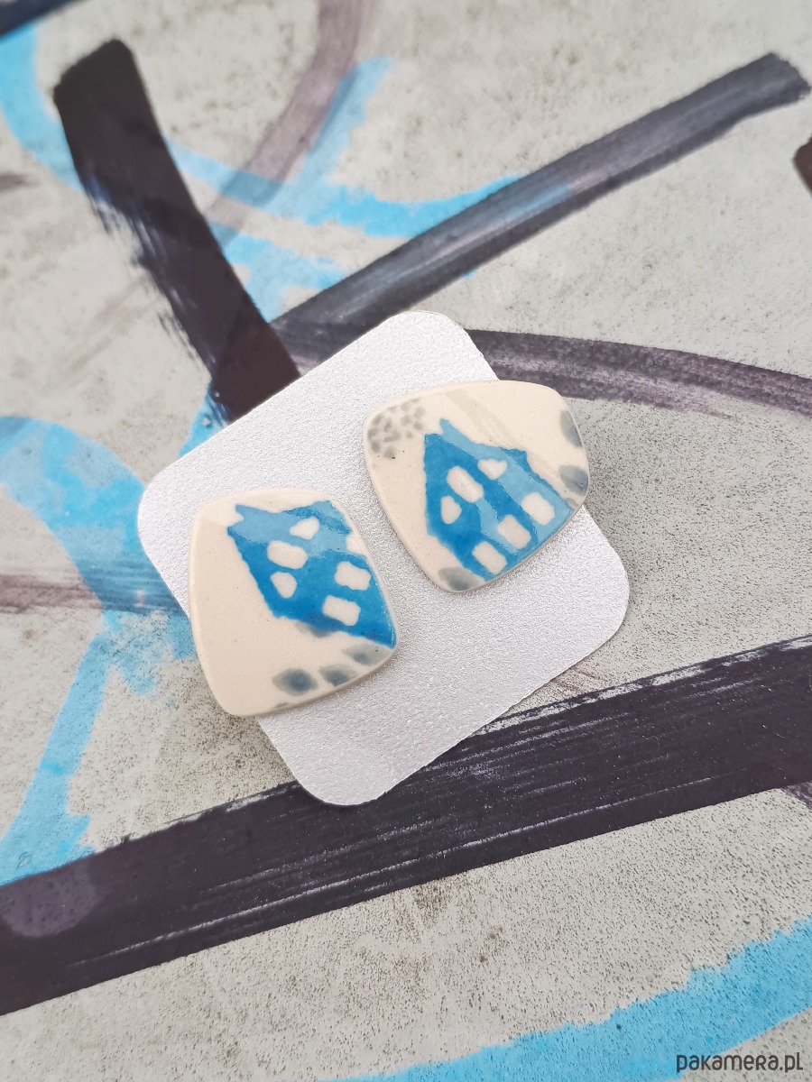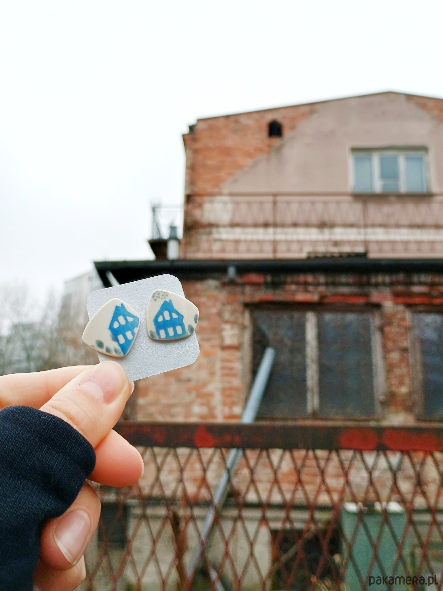 Ceramika w Bolesławcu i jego okolicach produkowana była już w XIV wieku. Do dziś najważniejszy surowiec, czyli glina wydobywany jest na miejscu, a tradycja wyrobu naczyń ceramicznych, rozwijana i kultywowana przez wieki - trwa. Bolesławiec jako marka, tworzona przez kilkadziesiąt różnych manufaktur, znana jest na całym świecie, a charakterystycznego wzoru w kobaltowe kropki nie sposób pomylić z żadnym innym. Co najbardziej wyróżnia Bolesławiec, to że szkliwo nakładane jest ręcznie, za pomocą stempelków z gąbki. Oto duże kolczyki, które wykonałam z fragmentów stłuczonego talerza, wykonanego właśnie w Bolesławcu. Kawałki stłuczki oszlifowałam w nieregularne asymetryczne kształty i połączyłam ze srebrnymi sztyftami. Ceramikę zeszlifowałam również z grubości - jest cieńsza niż pierwotnie, dzięki czemu kolczyki nie są masywne. Brzegi pokryłam lakierem, co sprawia, że nie brudzą się i nie chłoną wilgoci. Sztyfty oraz baranki (zapięcia) wykonane są ze srebra próby 925 - wyrób jest antyalergiczny. Wymiary elementów ceramicznych: 18 x 18 mm. Unikat - każdy z moich wyrobów występuje w jednym egzemplarzu. Upcykling - nie reprodukuję wykorzystywanych wzorów, niczego nie domalowuję - wykorzystuję wyłącznie oryginalne naczynia i motywy, które się na nich znajdują. Tym samym, stłuczce z odzysku nadaję nowe życie.