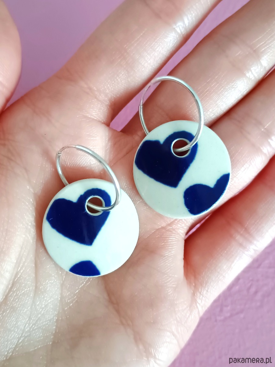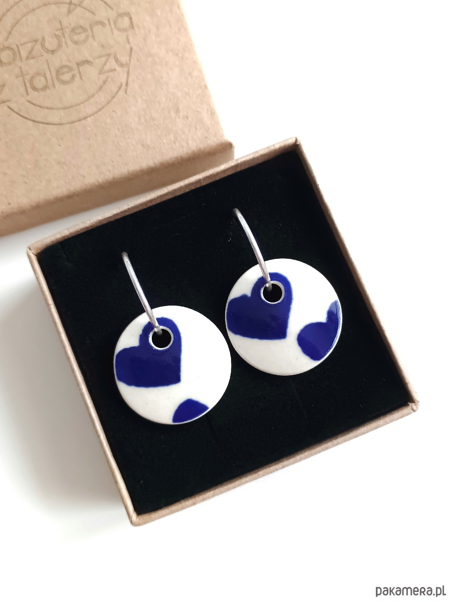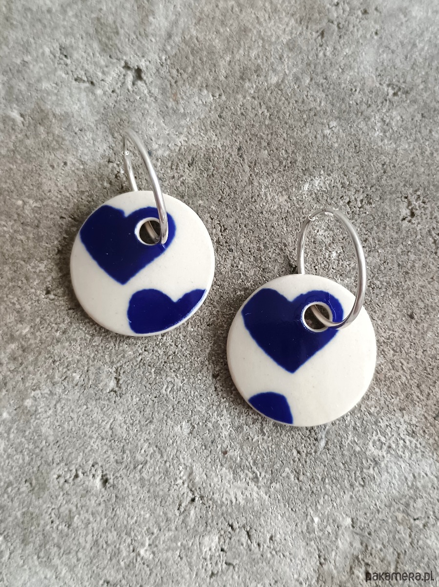 Kolczyki ceramiczne Bolesławiec serduszka koła