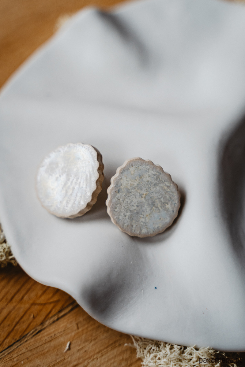Ceramiczne kolczyki sztyfty wykonane ręcznie z gliny, pokryte szkliwem krystalicznym.