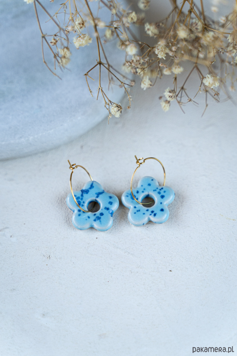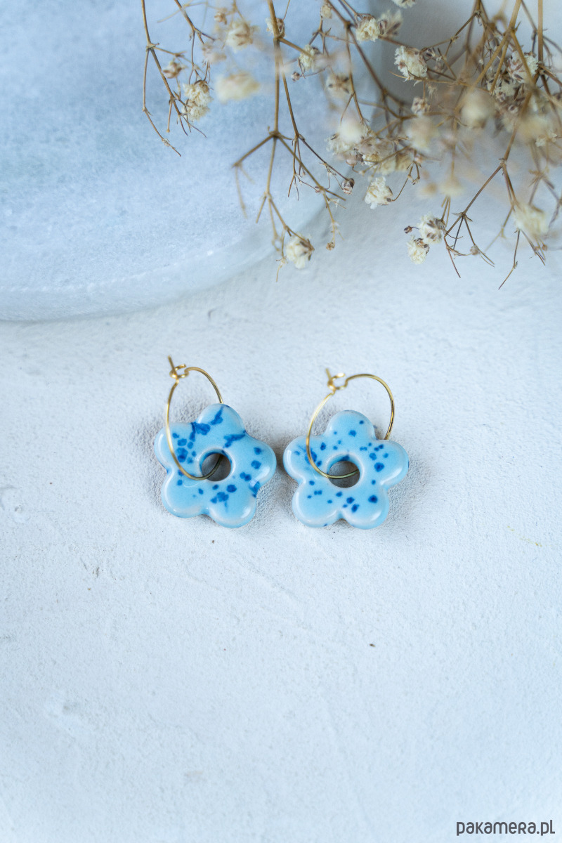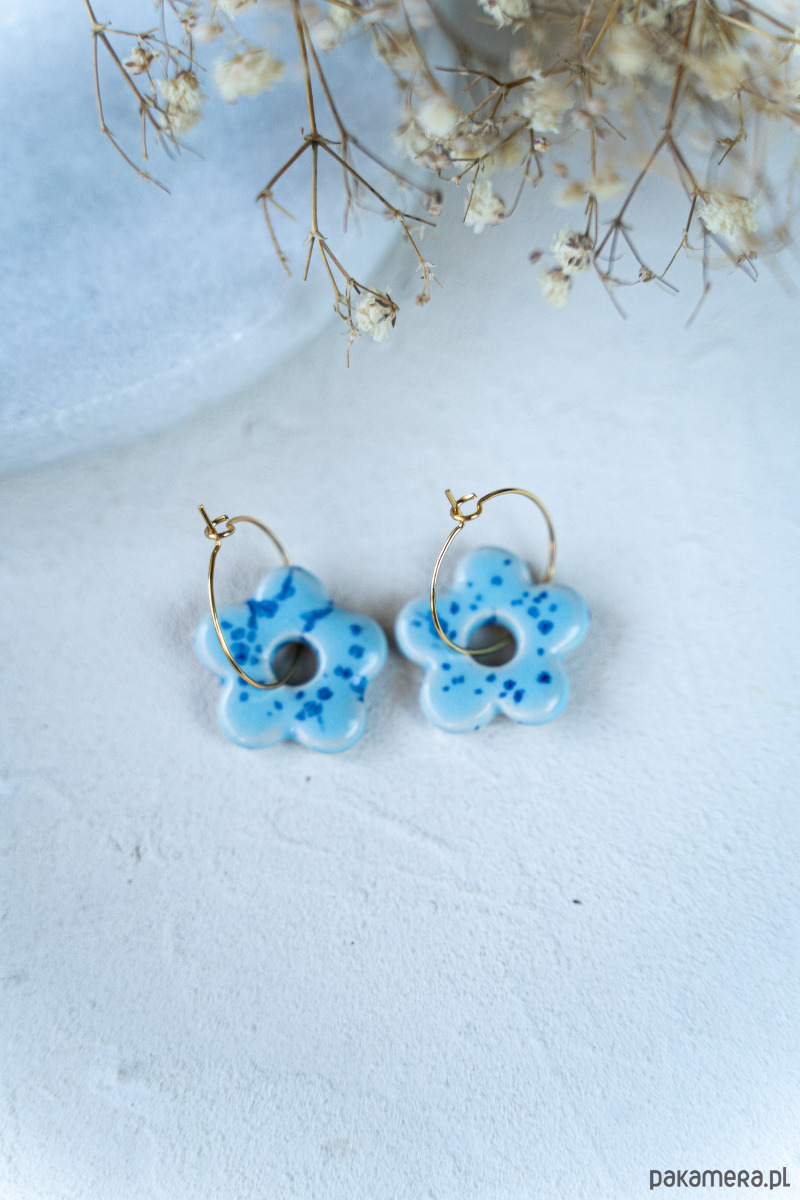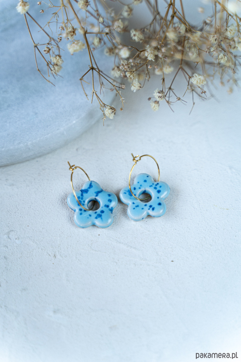 Te urocze kolczyki - kwiatki zostały ręcznie wykonane z najwyższej jakości białej gliny i pokryte dwukolorowym szkliwem.