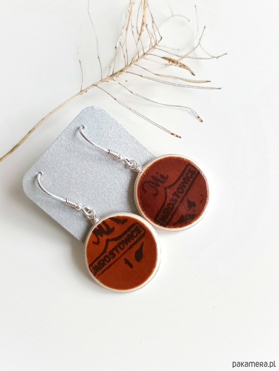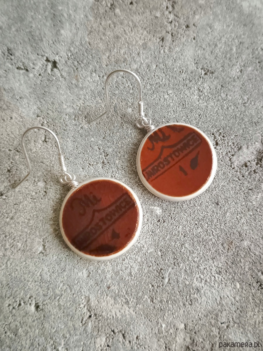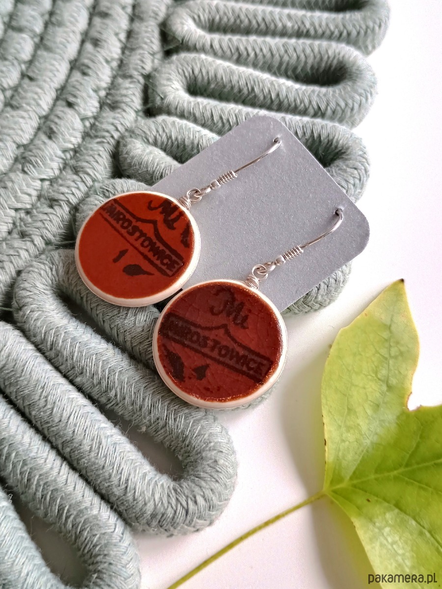 Mirostowicke Zakłady Ceramiczne powstały w latach 70. XIX wieku. Początkowo produkowano tam cegły i płytki, a w 1965 roku poszerzono ofertę o porcelitowe wyroby stołowe. Fabryka niestety nie przetrwała transformacji i została zlikwidowana w pierwszej połowie lat 90. Oto wiszące kolczyki, które wykonałam z fragmentów stłuczonych talerzy z Mirostowic. Kawałki stłuczki oszlifowałam w okrągłe kształty, oprawiłam w drucik i połączyłam ze srebrnymi biglami. Ceramikę zeszlifowałam również z grubości - jest cieńsza niż pierwotnie, dzięki czemu kolczyki nie są masywne. Brzegi i tył pokryłam lakierem, co sprawia, że nie brudzą się i nie chłoną wilgoci. Oprawa oraz bigle wykonane są ze srebra próby 925 - wyrób jest antyalergiczny. Średnica elementów ceramicznych: 22 mm. Waga kolczyka: 2,8 g. Unikat - każdy z moich wyrobów występuje w jednym egzemplarzu. Upcykling - nie reprodukuję wykorzystywanych wzorów, niczego nie domalowuję - wykorzystuję wyłącznie oryginalne naczynia i motywy, które się na nich znajdują. Tym samym, stłuczce z odzysku nadaję nowe życie.