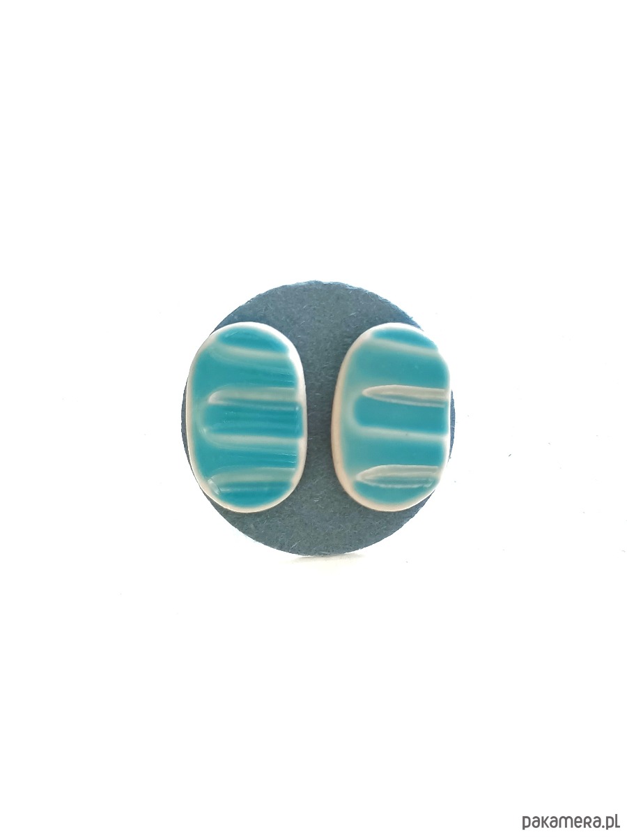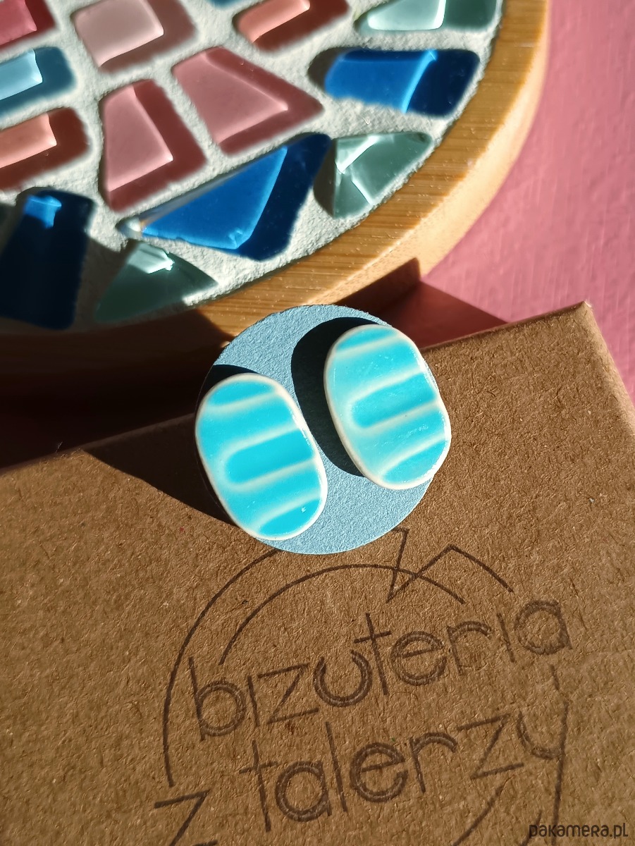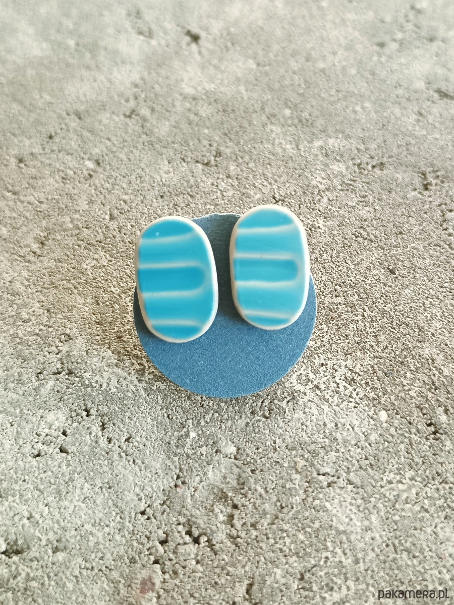 W Pruszkowie początkowo działała fabryka fajansu, założona przez Jakuba Teichfelda i Ludwika Asterbluma (późniejszych współwłaścicieli fabryki we Włocławku). Z kolei w latach 50. XX wieku zmodernizowano linię prudukcyjną, poszerzono ofertę i nadano nazwę "Zakłady Porcelitu Stołowego Pruszków". Oto nieduże owalne kolczyki, które wykonałam z fragmentów stłuczonego talerza z porcelitu pruszkowskiego w błekitnym kolorze. Kawałki stłuczki oszlifowałam i połączyłam ze srebrnymi sztyftami. Ceramikę zeszlifowałam również z grubości - jest cieńsza niż pierwotnie, dzięki czemu kolczyki nie są masywne. Brzegi i tył pokryłam lakierem, co sprawia, że nie brudzą się i nie chłoną wilgoci. Sztyfty oraz baranki (zapięcia) wykonane są ze srebra próby 925 - wyrób jest antyalergiczny. Wymiary elementów ceramicznych: 10 x 15 mm. Unikat - każdy z moich wyrobów występuje w jednym egzemplarzu. Upcykling - nie reprodukuję wykorzystywanych wzorów, niczego nie domalowuję - wykorzystuję wyłącznie oryginalne naczynia i motywy, które się na nich znajdują. Tym samym, stłuczce z odzysku nadaję nowe życie.