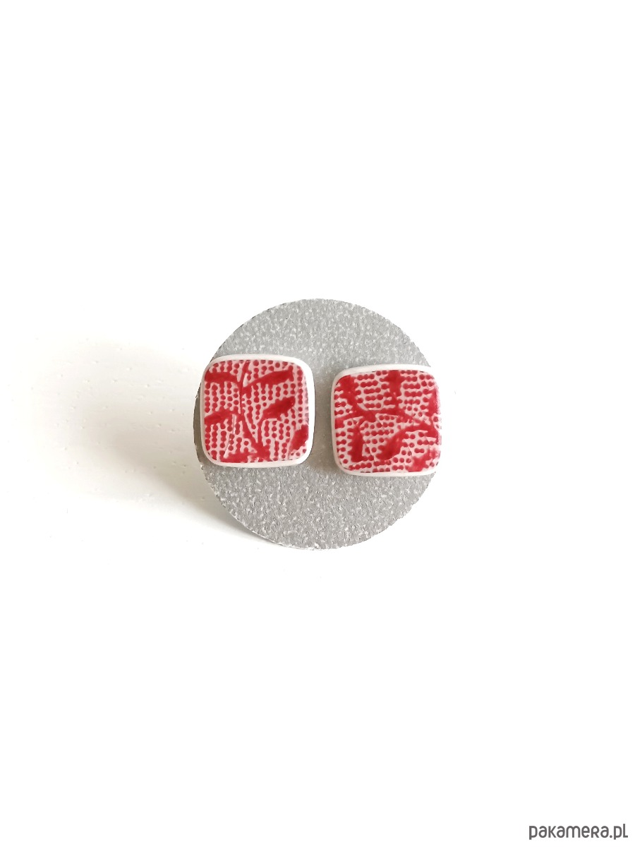 Kolczyki ceramiczne w czerwone wzory
