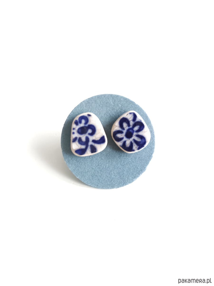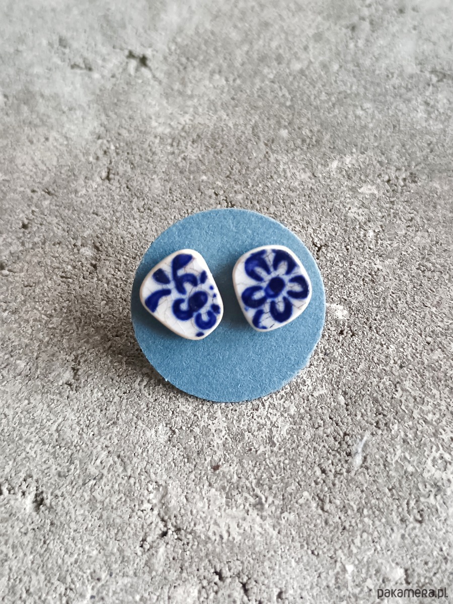 Kolczyki ceramiczne w kobaltowe kwiaty