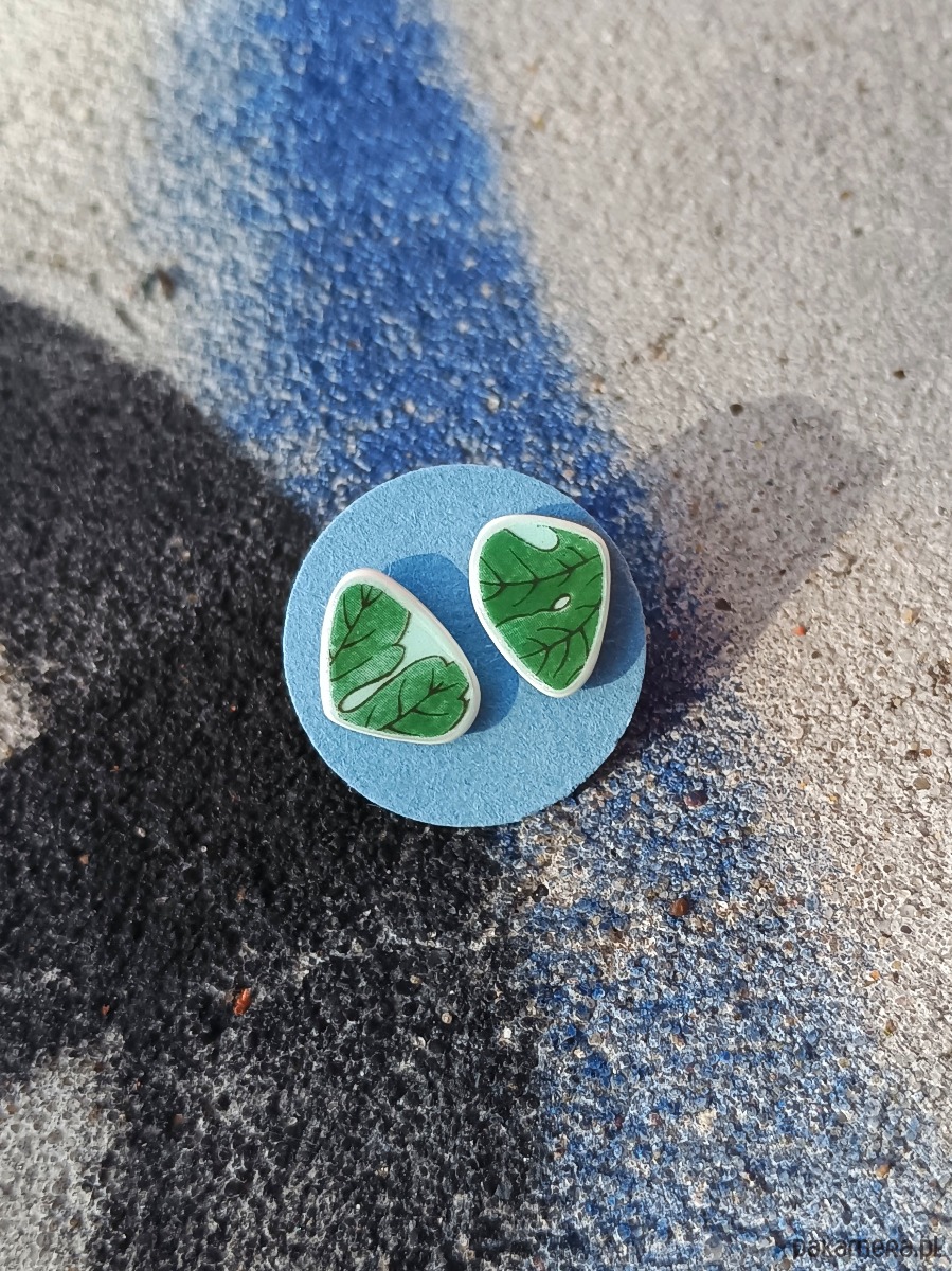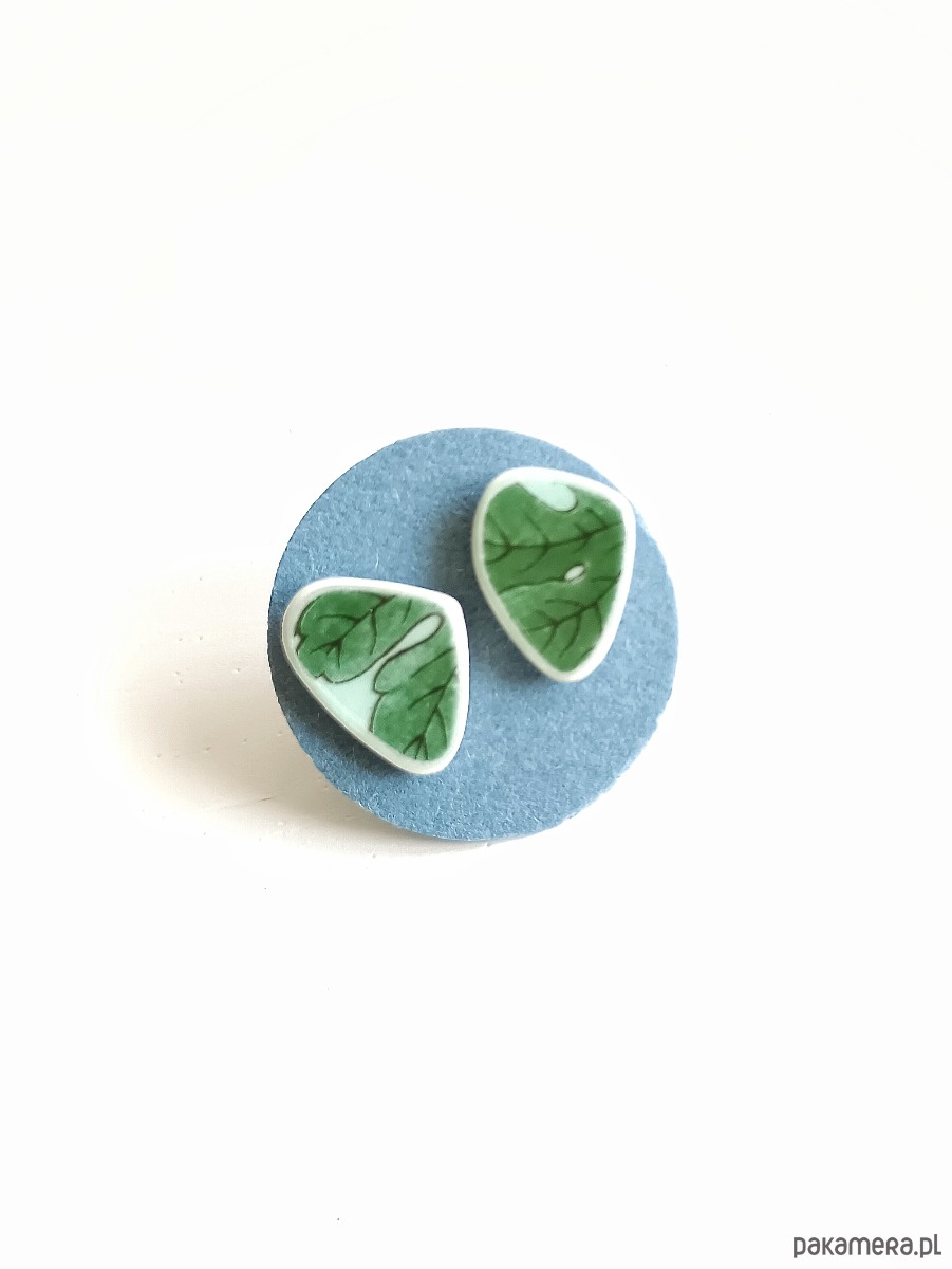 Kolczyki ceramiczne w zielone listki