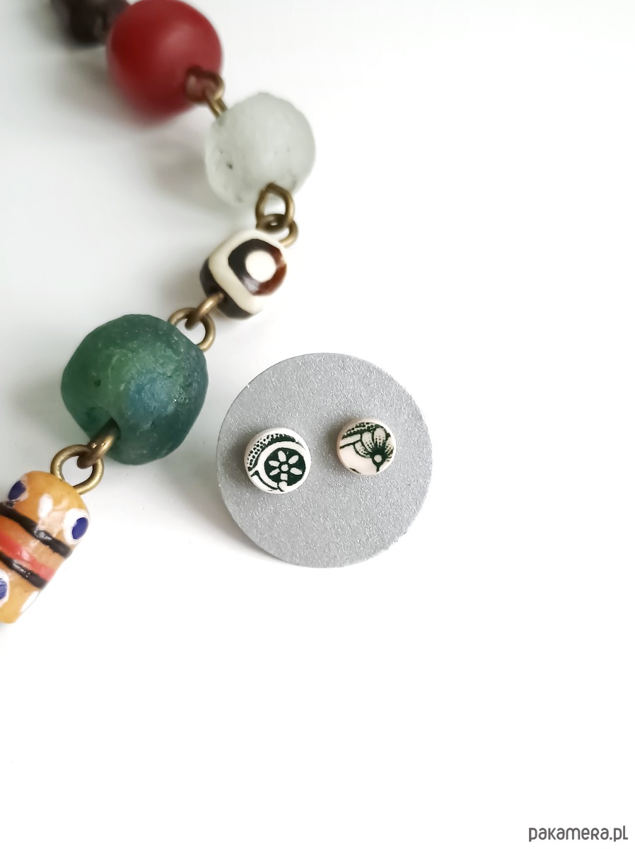 Kolczyki ceramiczne w zielone wzory