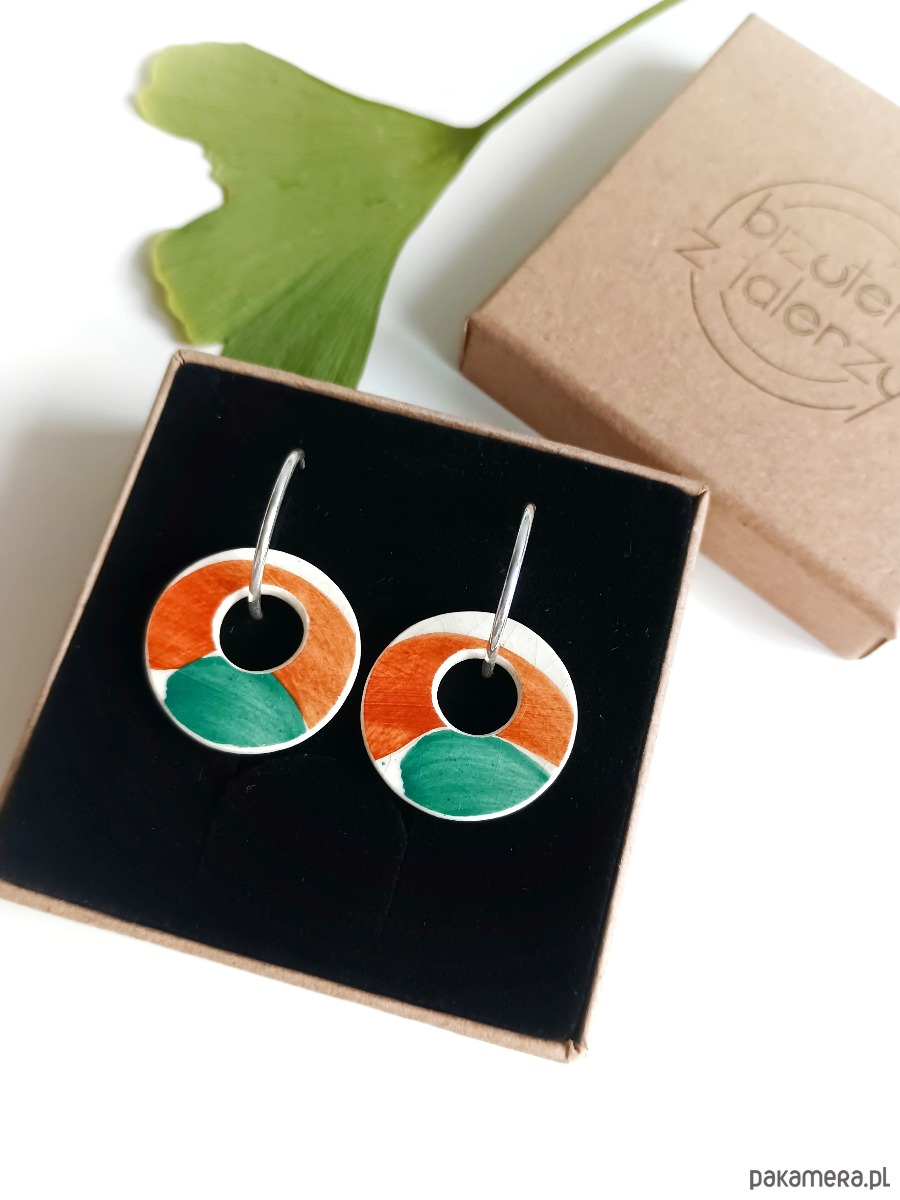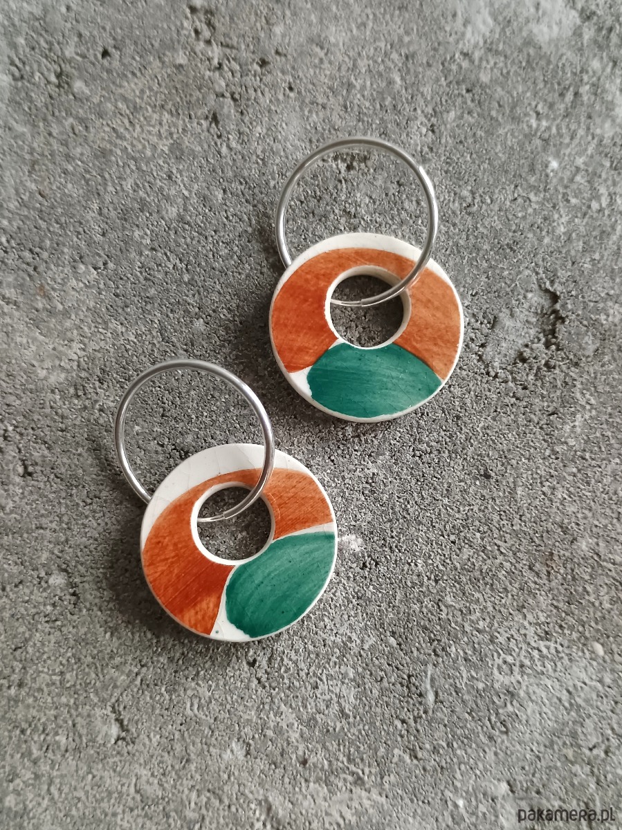 Historia fajansu włocławskiego sięga 1873 roku. Zakładów było kilka, zmieniali się właściciele i lokalizacje. Produkcja najbardziej rozwinęła się po II WŚ, kiedy w miejscowych zakładach powstawał nie tylko fajans, ale również porcelit i porcelana. Zróżnicowane było także wzornictwo - produkowano nie tylko naczynia, ale również elementy wyposażenia wnętrz (lampy, świeczniki, żyrandole). Mimo tej różnorodności, najbardziej rozpoznawalnym wyrobem z Włocławka jest talerz w ręcznie malowane kobaltowe kwiaty (z takich najchętniej korzystam :). I mimo, że najdłużej działająca fabryka zakończyła działalność w 1991 roku, dzięki lokalnym inicjatywom produkcja fajansu została wznowiona i trwa do dziś! Oto wiszące kolczyki, które wykonałam z fragmentów fajansu włocławskiego ręcznie malowanego w kolorowe kwiaty. Kawałki stłuczki oszlifowałam w okrągłe kształty i połączyłam ze srebrnymi zapięciami. Ceramikę zeszlifowałam z grubości, dzięki czemu kolczyki nie są ciężkie. Brzegi i tył pokryłam lakierem, co sprawia, że nie brudzą się i nie chłoną wilgoci. Zapięcie, czyli koła o średnicy 19 mm wykonane są ze srebra próby 925 - wyrób jest antyalergiczny. Średnica elementów ceramicznych: 22 mm. Waga jednego kolczyka: 1,9 g. Unikat - każdy z moich wyrobów występuje w jednym egzemplarzu. Upcykling - nie reprodukuję wykorzystywanych wzorów, niczego nie domalowuję - wykorzystuję wyłącznie oryginalne naczynia i motywy, które się na nich znajdują. Tym samym, stłuczce z odzysku nadaję nowe życie.