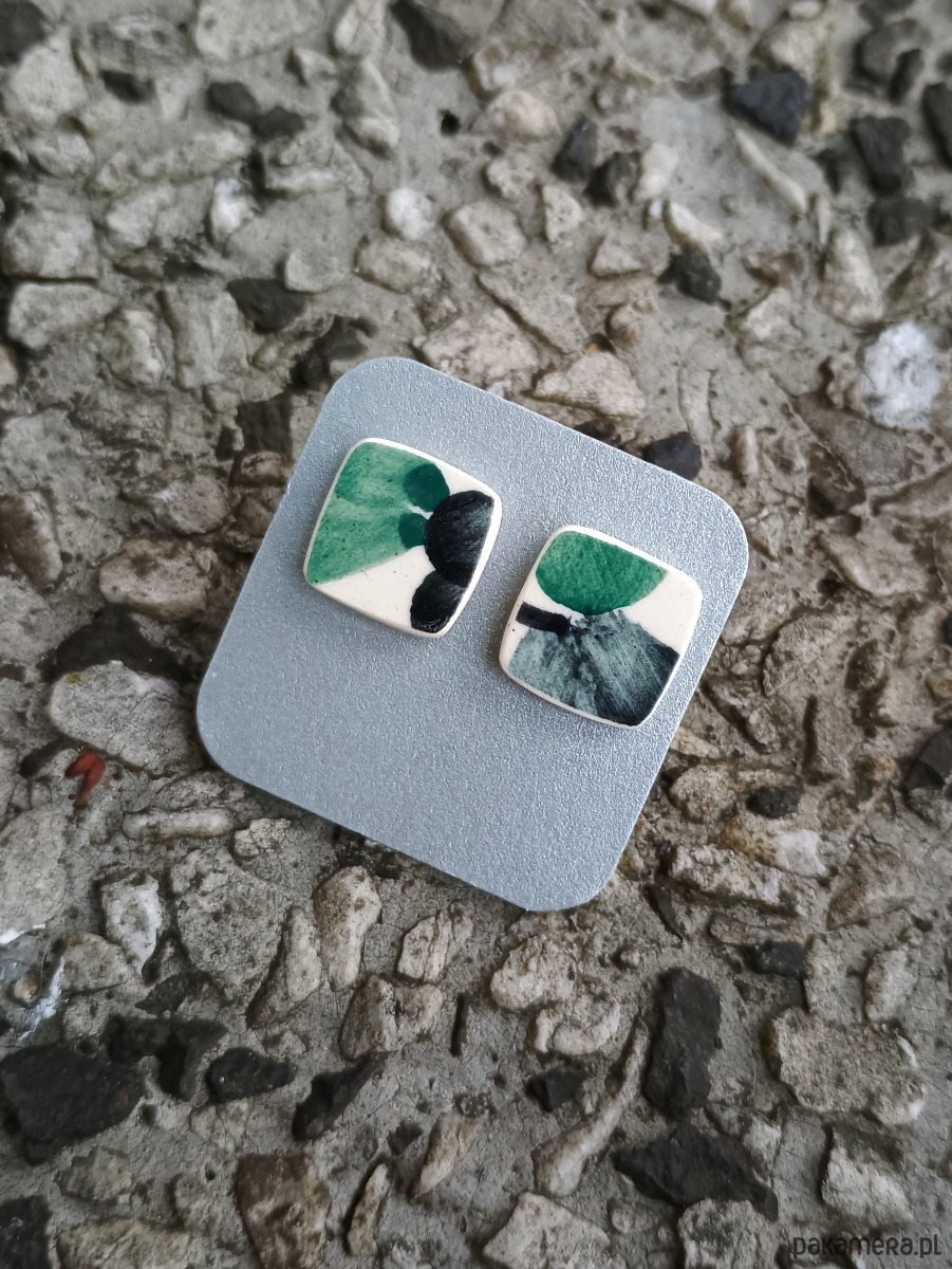 Historia fajansu włocławskiego sięga 1873 roku. Zakładów było kilka, zmieniali się właściciele i lokalizacje. Produkcja najbardziej rozwinęła się po II WŚ, kiedy w miejscowych zakładach powstawał nie tylko fajans, ale również porcelit i porcelana. Zróżnicowane było także wzornictwo - produkowano nie tylko naczynia, ale również elementy wyposażenia wnętrz (lampy, świeczniki, żyrandole). Mimo tej różnorodności, najbardziej rozpoznawalnym wyrobem z Włocławka jest talerz w ręcznie malowane kobaltowe kwiaty (z takich najchętniej korzystam :). I mimo, że najdłużej działająca fabryka zakończyła działalność w 1991 roku, dzięki lokalnym inicjatywom produkcja fajansu została wznowiona i trwa do dziś! Oto duże kwadratowe kolczyki, które wykonałam z fragmentów fajansu włocławskiego ręcznie malowanego w kolorowe wzory. Kawałki stłuczki oszlifowałam i połączyłam ze srebrnymi sztyftami. Ceramikę zeszlifowałam również z grubości - jest cieńsza niż pierwotnie, dzięki czemu kolczyki nie są masywne. Brzegi i tył pokryłam lakierem, co sprawia, że nie brudzą się i nie chłoną wilgoci. Sztyfty oraz baranki (zapięcia) wykonane są ze srebra próby 925 - wyrób jest antyalergiczny. Wymiary elementów ceramicznych: 13 x 13 mm. Unikat - każdy z moich wyrobów występuje w jednym egzemplarzu. Upcykling - nie reprodukuję wykorzystywanych wzorów, niczego nie domalowuję - wykorzystuję wyłącznie oryginalne naczynia i motywy, które się na nich znajdują. Tym samym, stłuczce z odzysku nadaję nowe życie.