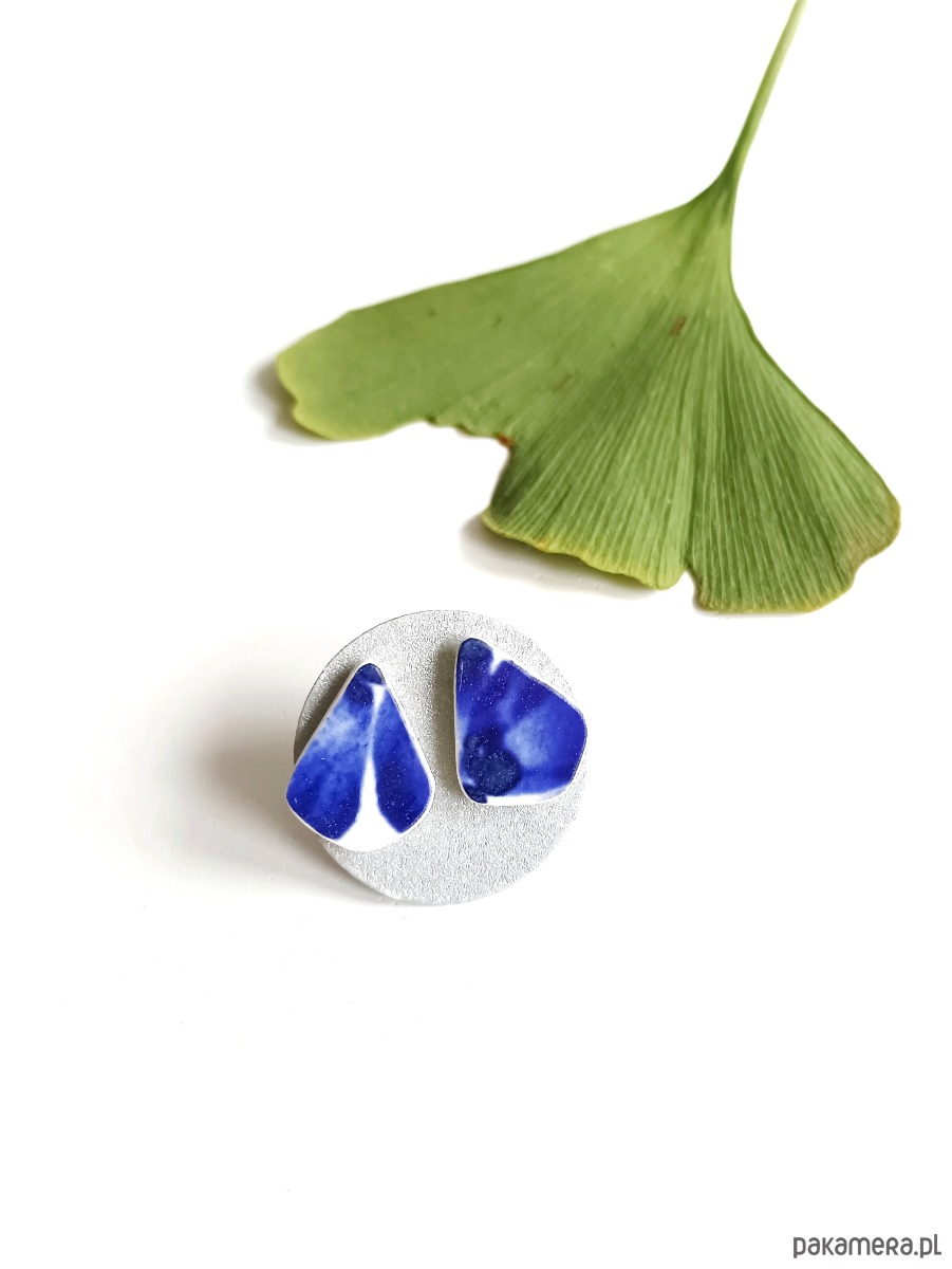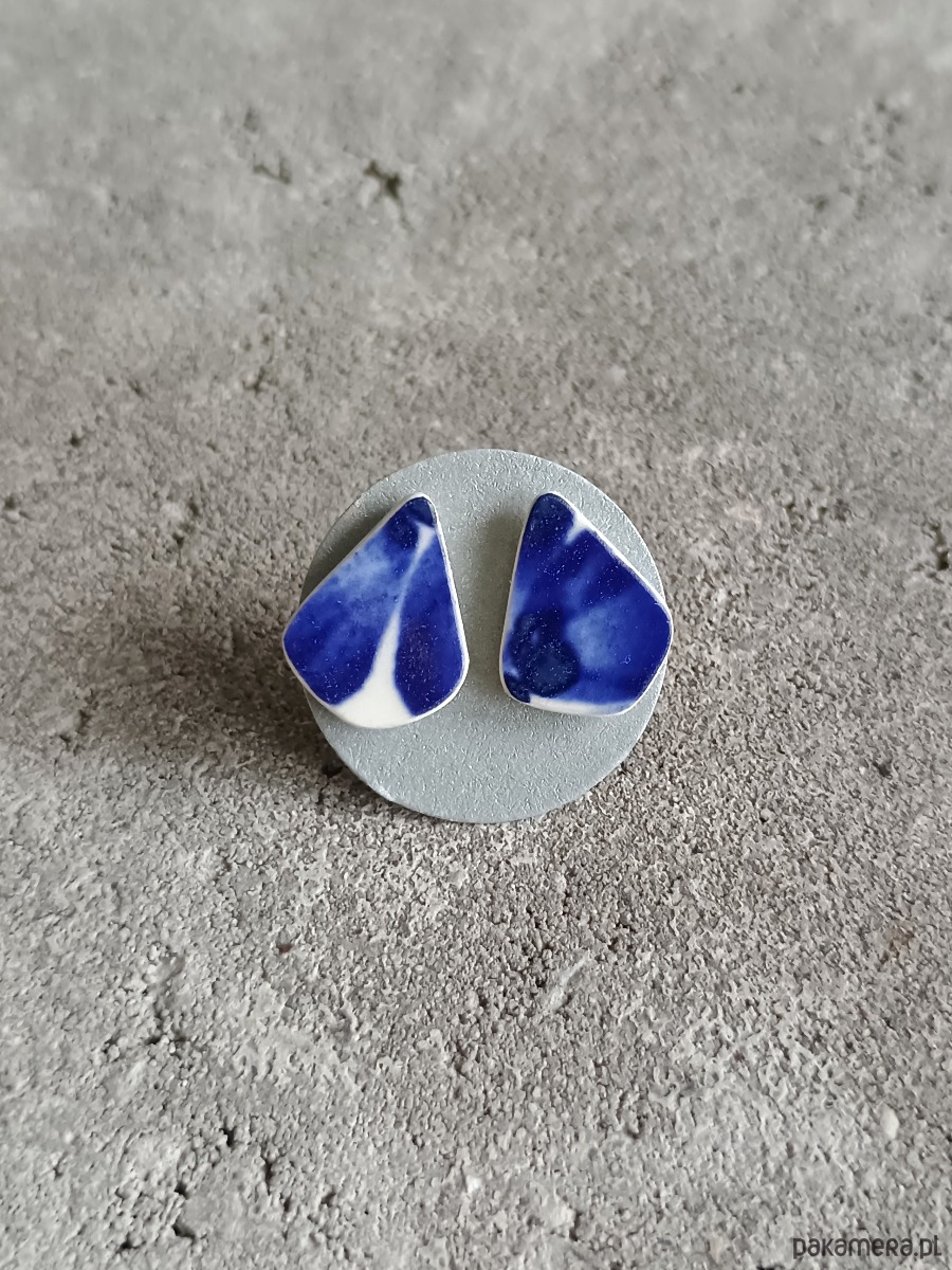 Historia fajansu włocławskiego sięga 1873 roku. Zakładów było kilka, zmieniali się właściciele i lokalizacje. Produkcja najbardziej rozwinęła się po II WŚ, kiedy w miejscowych zakładach powstawał nie tylko fajans, ale również porcelit i porcelana. Zróżnicowane było także wzornictwo - produkowano nie tylko naczynia, ale również elementy wyposażenia wnętrz (lampy, świeczniki, żyrandole). Mimo tej różnorodności, najbardziej rozpoznawalnym wyrobem z Włocławka jest talerz w ręcznie malowane kobaltowe kwiaty (z takich najchętniej korzystam :). I mimo, że najdłużej działająca fabryka zakończyła działalność w 1991 roku, dzięki lokalnym inicjatywom produkcja fajansu została wznowiona i trwa do dziś! Oto nieduże kolczyki - łezki, które wykonałam z fragmentów fajansu włocławskiego ręcznie malowanego w kobaltowe wzory. Kawałki stłuczki oszlifowałam i połączyłam ze srebrnymi sztyftami. Ceramikę zeszlifowałam również z grubości - jest cieńsza niż pierwotnie, dzięki czemu kolczyki nie są masywne. Brzegi i tył pokryłam lakierem, co sprawia, że nie brudzą się i nie chłoną wilgoci. Sztyfty oraz baranki (zapięcia) wykonane są ze srebra próby 925 - wyrób jest antyalergiczny. Wymiary elementów ceramicznych: 11 x 14 mm. Unikat - każdy z moich wyrobów występuje w jednym egzemplarzu. Upcykling - nie reprodukuję wykorzystywanych wzorów, niczego nie domalowuję - wykorzystuję wyłącznie oryginalne naczynia i motywy, które się na nich znajdują. Tym samym, stłuczce z odzysku nadaję nowe życie.