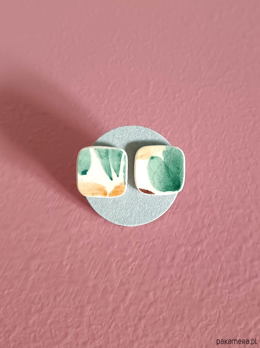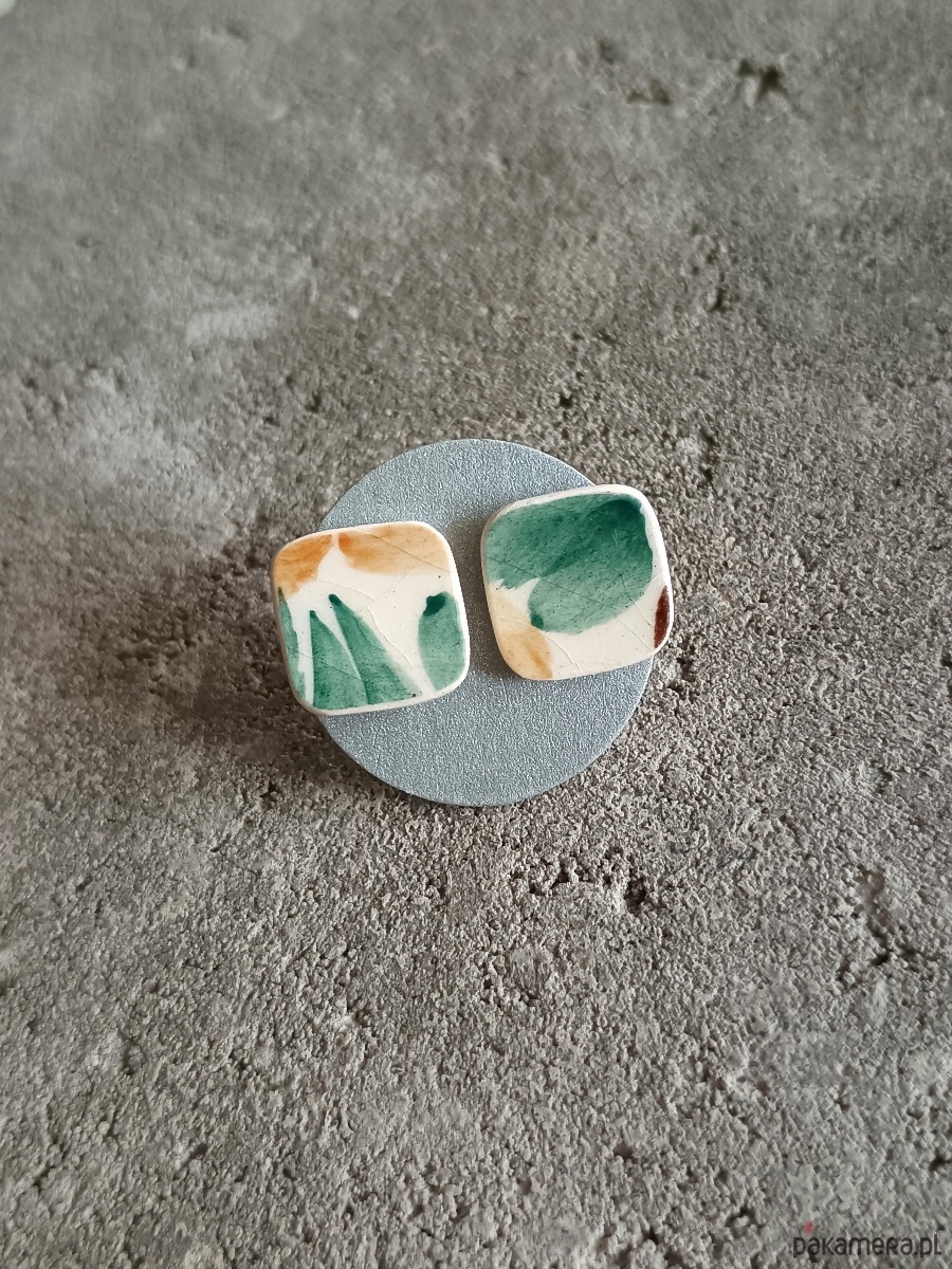 Historia fajansu włocławskiego sięga 1873 roku. Zakładów było kilka, zmieniali się właściciele i lokalizacje. Produkcja najbardziej rozwinęła się po II WŚ, kiedy w miejscowych zakładach powstawał nie tylko fajans, ale również porcelit i porcelana. Zróżnicowane było także wzornictwo - produkowano nie tylko naczynia, ale również elementy wyposażenia wnętrz (lampy, świeczniki, żyrandole). Mimo tej różnorodności, najbardziej rozpoznawalnym wyrobem z Włocławka jest talerz w ręcznie malowane kobaltowe kwiaty (z takich najchętniej korzystam :). I mimo, że najdłużej działająca fabryka zakończyła działalność w 1991 roku, dzięki lokalnym inicjatywom produkcja fajansu została wznowiona i trwa do dziś! Oto małe kwadratowe kolczyki, które wykonałam z fragmentów fajansu włocławskiego ręcznie malowanego w kolorowe wzory. Kawałki stłuczki oszlifowałam i połączyłam ze srebrnymi sztyftami. Ceramikę zeszlifowałam również z grubości - jest cieńsza niż pierwotnie, dzięki czemu kolczyki nie są masywne. Brzegi i tył pokryłam lakierem, co sprawia, że nie brudzą się i nie chłoną wilgoci. Sztyfty oraz baranki (zapięcia) wykonane są ze srebra próby 925 - wyrób jest antyalergiczny. Wymiary elementów ceramicznych: 11 x 11 mm. Unikat - każdy z moich wyrobów występuje w jednym egzemplarzu. Upcykling - nie reprodukuję wykorzystywanych wzorów, niczego nie domalowuję - wykorzystuję wyłącznie oryginalne naczynia i motywy, które się na nich znajdują. Tym samym, stłuczce z odzysku nadaję nowe życie.