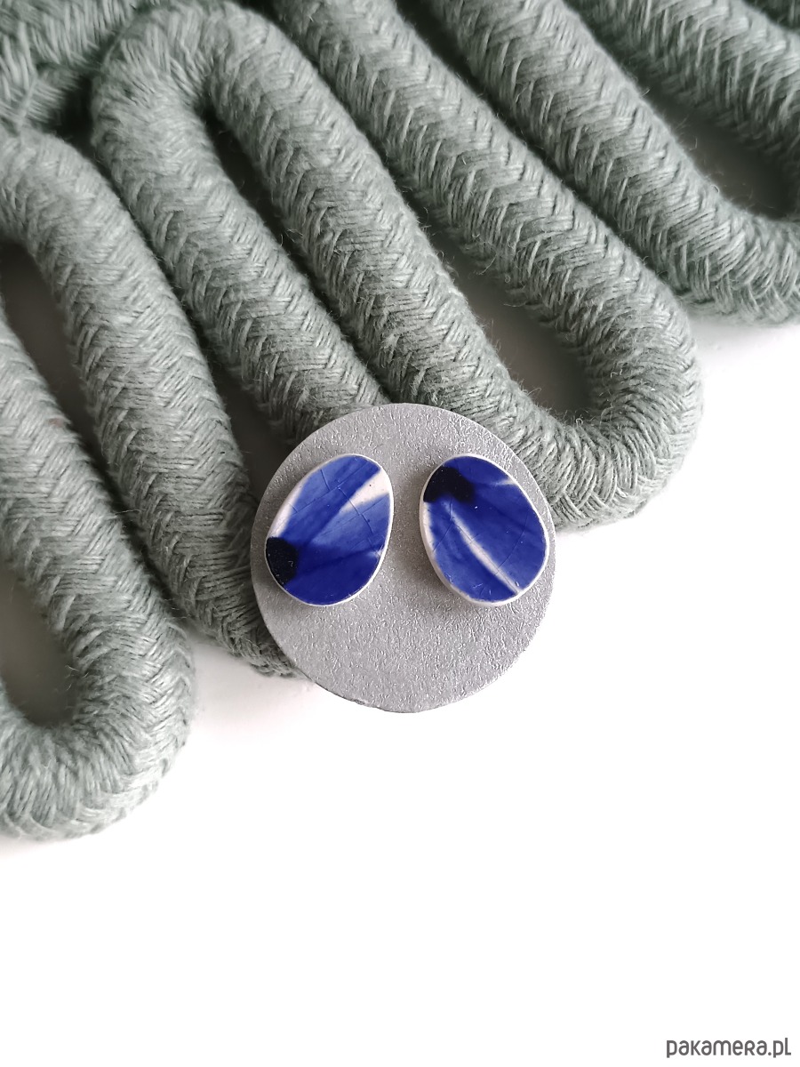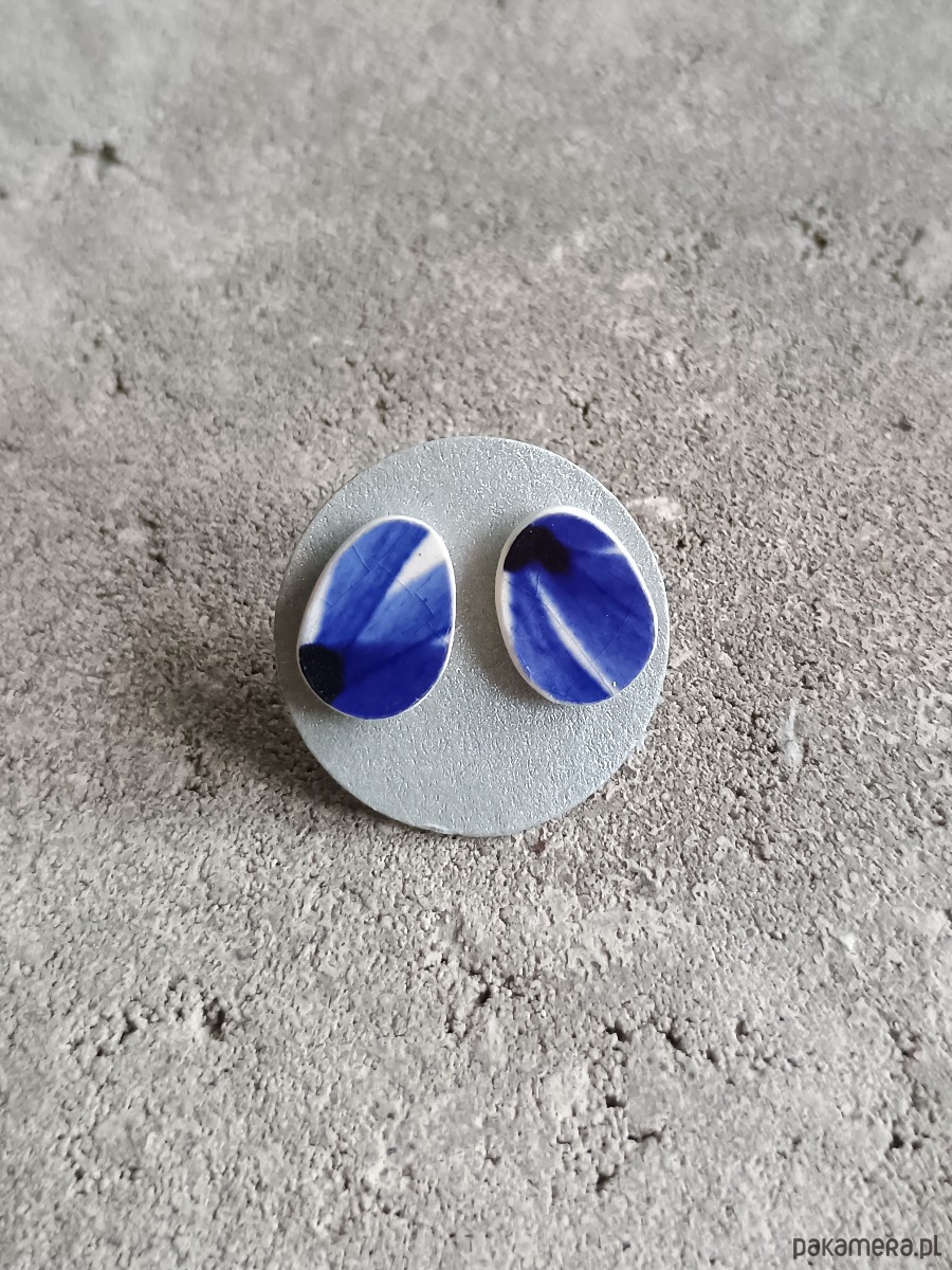 Historia fajansu włocławskiego sięga 1873 roku. Zakładów było kilka, zmieniali się właściciele i lokalizacje. Produkcja najbardziej rozwinęła się po II WŚ, kiedy w miejscowych zakładach powstawał nie tylko fajans, ale również porcelit i porcelana. Zróżnicowane było także wzornictwo - produkowano nie tylko naczynia, ale również elementy wyposażenia wnętrz (lampy, świeczniki, żyrandole). Mimo tej różnorodności, najbardziej rozpoznawalnym wyrobem z Włocławka jest talerz w ręcznie malowane kobaltowe kwiaty (z takich najchętniej korzystam :). I mimo, że najdłużej działająca fabryka zakończyła działalność w 1991 roku, dzięki lokalnym inicjatywom produkcja fajansu została wznowiona i trwa do dziś! Oto nieduże owalne kolczyki, które wykonałam z fragmentów fajansu włocławskiego ręcznie malowanego w kobaltowe wzory. Kawałki stłuczki oszlifowałam i połączyłam ze srebrnymi sztyftami. Ceramikę zeszlifowałam również z grubości - jest cieńsza niż pierwotnie, dzięki czemu kolczyki nie są masywne. Brzegi i tył pokryłam lakierem, co sprawia, że nie brudzą się i nie chłoną wilgoci. Sztyfty oraz baranki (zapięcia) wykonane są ze srebra próby 925 - wyrób jest antyalergiczny. Wymiary elementów ceramicznych: 8 x 11 mm. Unikat - każdy z moich wyrobów występuje w jednym egzemplarzu. Upcykling - nie reprodukuję wykorzystywanych wzorów, niczego nie domalowuję - wykorzystuję wyłącznie oryginalne naczynia i motywy, które się na nich znajdują. Tym samym, stłuczce z odzysku nadaję nowe życie.