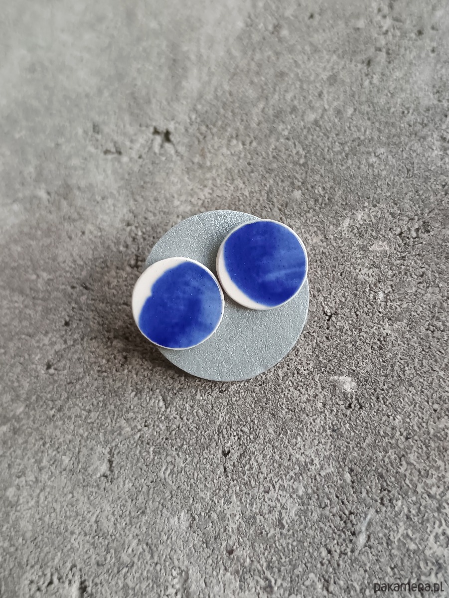 Historia fajansu włocławskiego sięga 1873 roku. Zakładów było kilka, zmieniali się właściciele i lokalizacje. Produkcja najbardziej rozwinęła się po II WŚ, kiedy w miejscowych zakładach powstawał nie tylko fajans, ale również porcelit i porcelana. Zróżnicowane było także wzornictwo - produkowano nie tylko naczynia, ale również elementy wyposażenia wnętrz (lampy, świeczniki, żyrandole). Mimo tej różnorodności, najbardziej rozpoznawalnym wyrobem z Włocławka jest talerz w ręcznie malowane kobaltowe kwiaty (z takich najchętniej korzystam :). I mimo, że najdłużej działająca fabryka zakończyła działalność w 1991 roku, dzięki lokalnym inicjatywom produkcja fajansu została wznowiona i trwa do dziś! Oto nieduże okrągłe kolczyki, które wykonałam z fragmentów fajansu włocławskiego ręcznie malowanego w kobaltowe wzory. Kawałki stłuczki oszlifowałam i połączyłam ze srebrnymi sztyftami. Ceramikę zeszlifowałam również z grubości - jest cieńsza niż pierwotnie, dzięki czemu kolczyki nie są masywne. Brzegi i tył pokryłam lakierem, co sprawia, że nie brudzą się i nie chłoną wilgoci. Sztyfty oraz baranki (zapięcia) wykonane są ze srebra próby 925 - wyrób jest antyalergiczny. Średnica elementów ceramicznych: 11 mm. Unikat - każdy z moich wyrobów występuje w jednym egzemplarzu. Upcykling - nie reprodukuję wykorzystywanych wzorów, niczego nie domalowuję - wykorzystuję wyłącznie oryginalne naczynia i motywy, które się na nich znajdują. Tym samym, stłuczce z odzysku nadaję nowe życie.