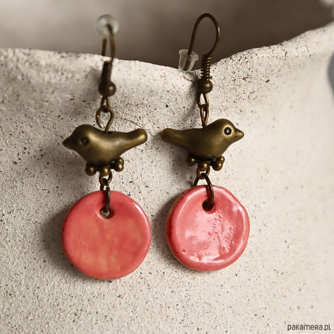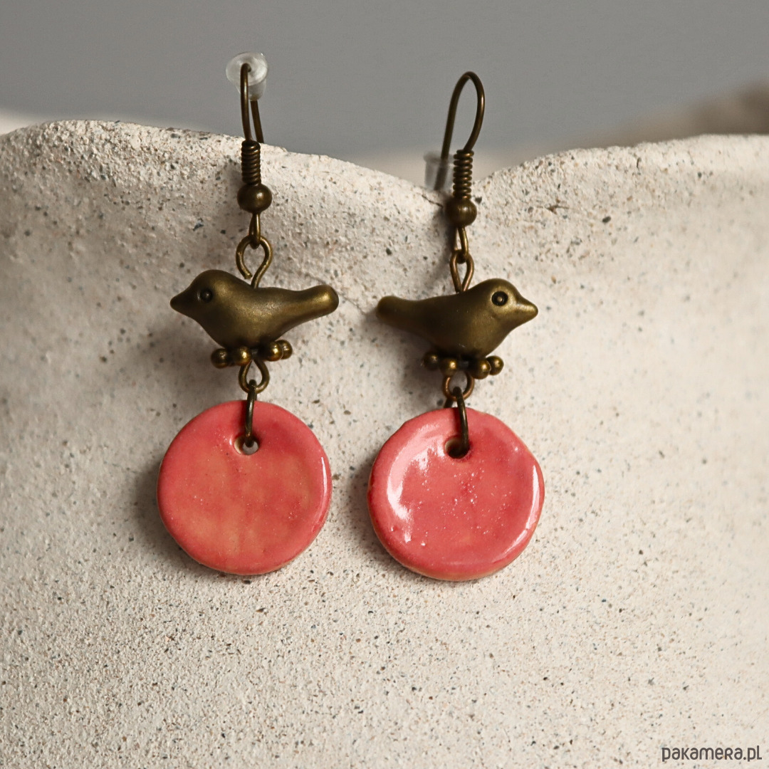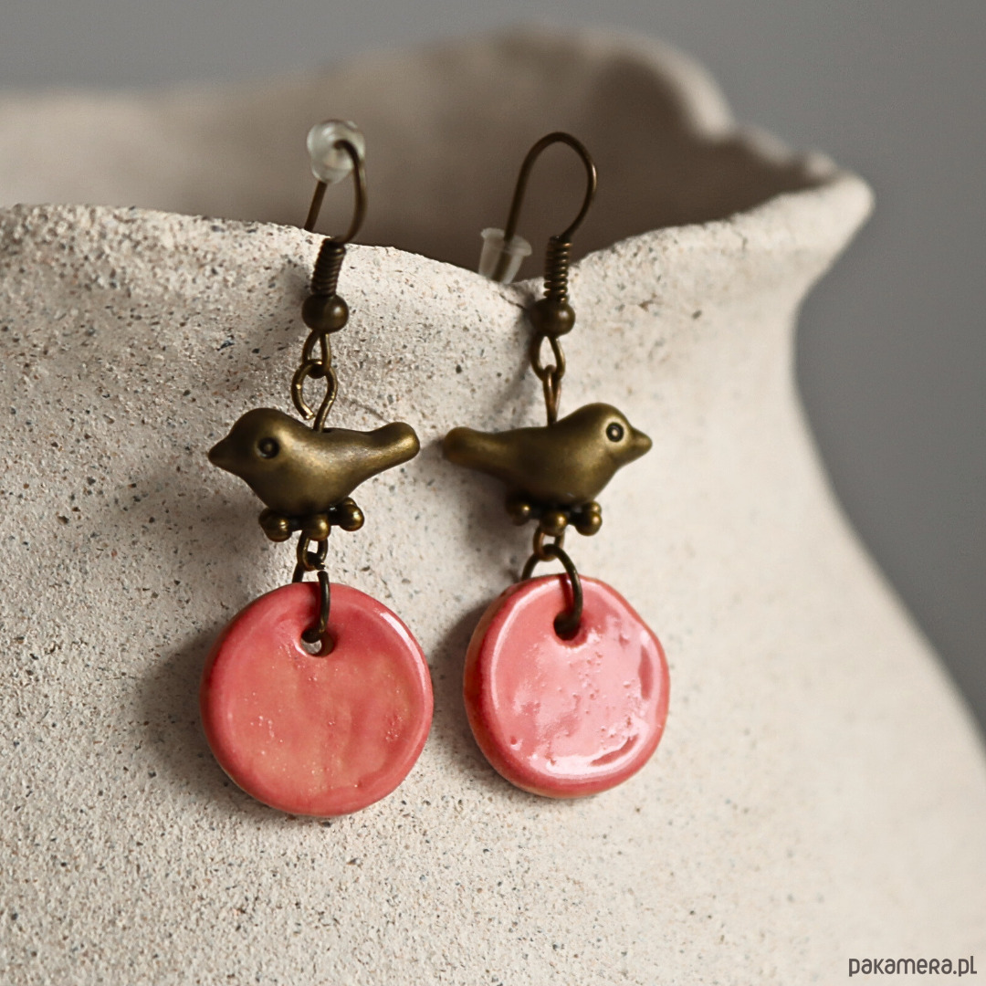 Kolczyki ceramiczne z ptaszkiem