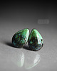 Ceramiczne kolczyki w formie sztyftów, ręcznie wykonane z delikatnej gliny kamionkowej, jednostronnie szkliwione mieszanką zielonych szkliw z efektem plamek, na antyalergicznych sztyftach w kolorze srebrnym. Długość ok. 13mm. Polecam