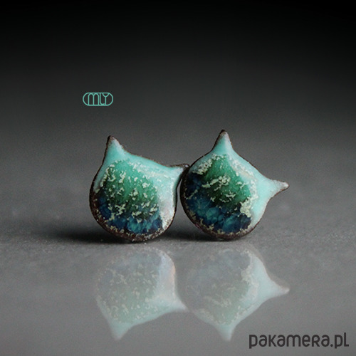 Efektowne kolczyki w formie sztyftów, ręcznie wykonane z delikatnej gliny kamionkowej, jednostronnie szkliwione zielonym szkliwem, na antyalergicznych sztyftach w kolorze srebrnym.długość elementu ceramicznego ok. 10mm, Polecam