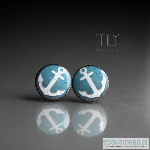 Ceramiczne okrągłe kolczyki, ręcznie wykonane z delikatnej gliny kamionkowej, jednostronnie szkliwione mieszanką szaro beżowych szkliw z efektem plamek, dekorowane autorska kalką ceramiczną,na antyalergicznych sztyftach w kolorze srebrnym. Średnica ok. 11mm. Polecam