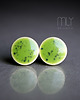 Ceramiczne okrągłe kolczyki w formie sztyftów, ręcznie wykonane z delikatnej gliny kamionkowej jednostronnie szkliwione intensywnym zielonym szkliwem z efektem plamek i pięknym połyskiem, na antyalergicznych sztyftach w kolorze srebrnym. Średnica ok. 9mm. Polecam