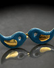 Efektowne kolczyki w formie sztyftów, ręcznie wykonane z delikatnej kamionki, jednostronnie szkliwione zielonym szkliwem, malowane złotem naszkliwnym, na antyalergicznych sztyftach w kolorze srebrnym.długość elementu ceramicznego ok. 17mm, Polecam
