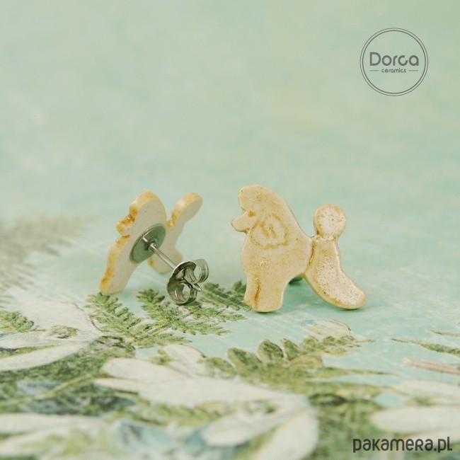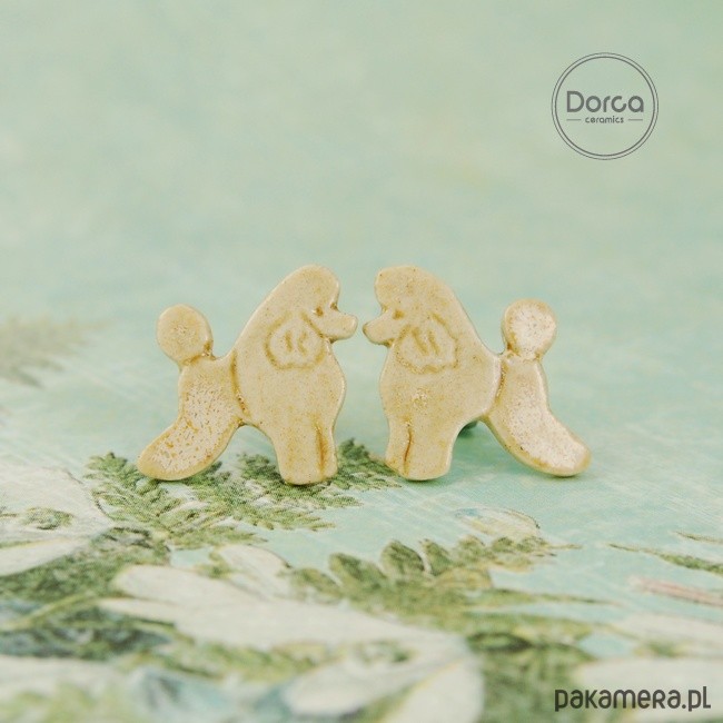 Nowy wzór dla miłośników tej rasy:)))) Malutkie pieski poszkliwione w kolorze bezowym ( kolor zbliżony do umaszczenia psa: morelowy) mają wymiary: 1,7cm wysokość( z głową), 1,8cm szerokość( z ogonkiem), 1,5mm grubość. Kolczyki wykonuję od podstaw ręcznie:) Każda para jest inna:)))Pudelki zostały solidnie umocowane na sztyftach ze stali chirurgicznej- antyalergiczna w kolorze oksydowanego srebra. Ostatnie zdjęcie prezentuje przykładową parę z tego wzoru na modelce.Wysyłam w ozdobnym pudełeczku.