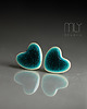 Ceramiczne kolczyki w formie sztyftów, ręcznie wykonane z delikatnej gliny kamionkowej, jednostronnie szkliwione zielonym szkliwem z efektem plamek, na antyalergicznych sztyftach w kolorze srebrnym. Średnica ok. 12mm