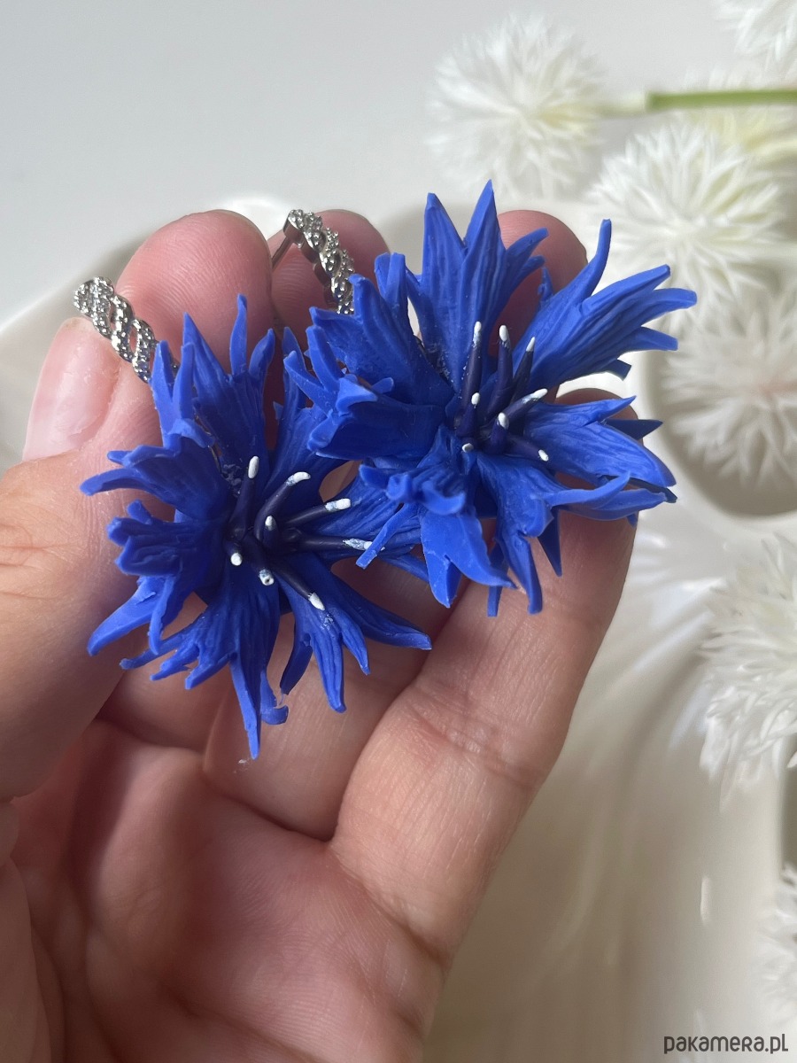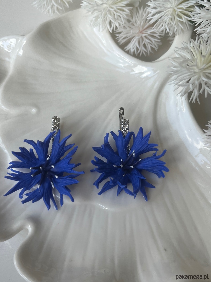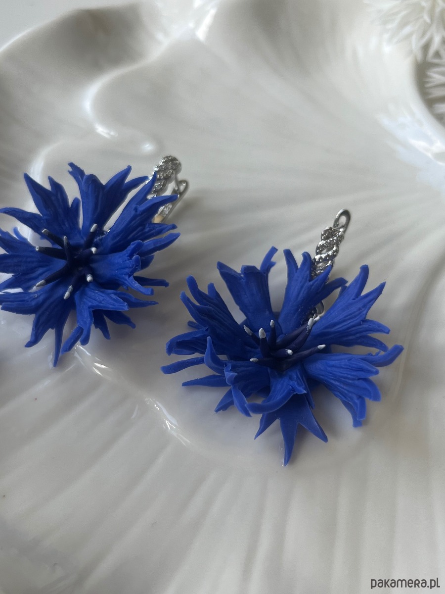 Wyjątkowe, ręcznie wykonane kolczyki w kształcie niebieskich chabrów.