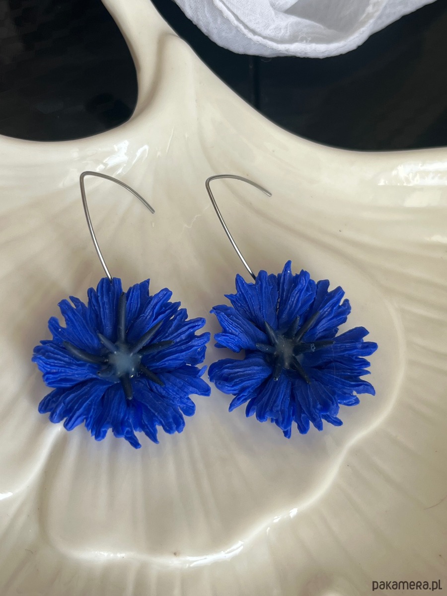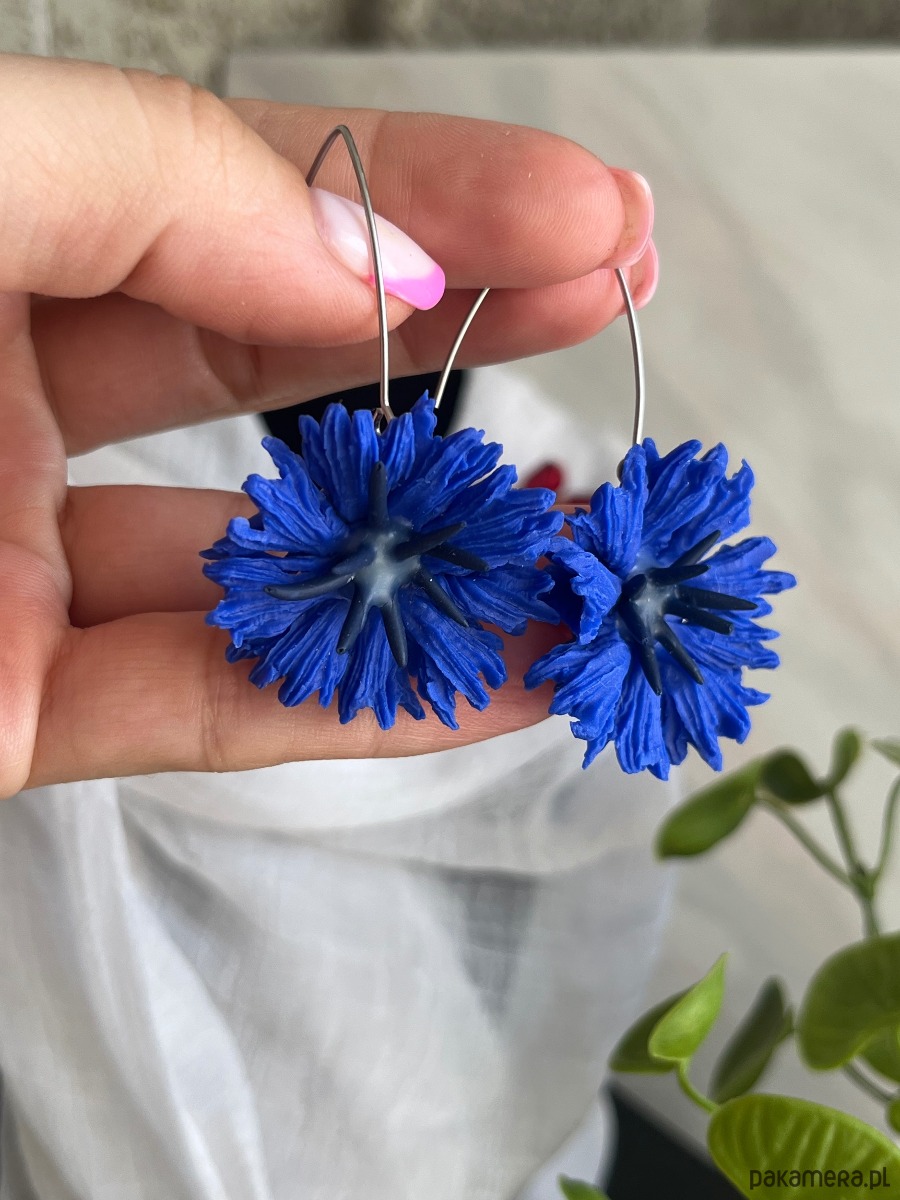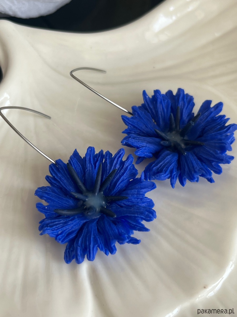 Kolczyki chabry ręcznie robione polimerowa glina
