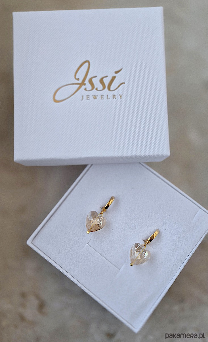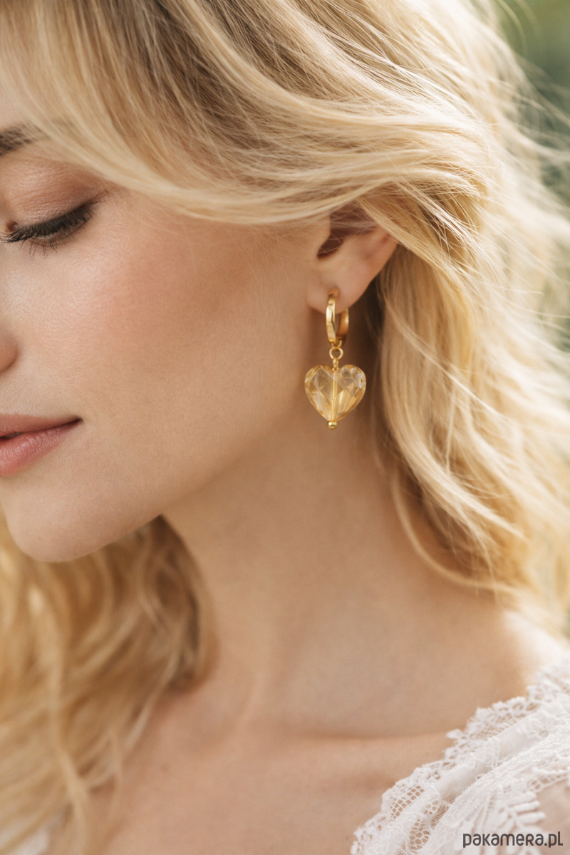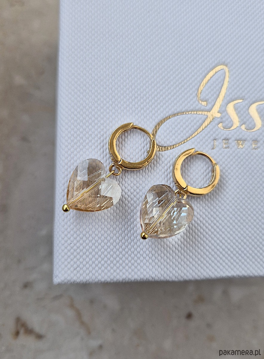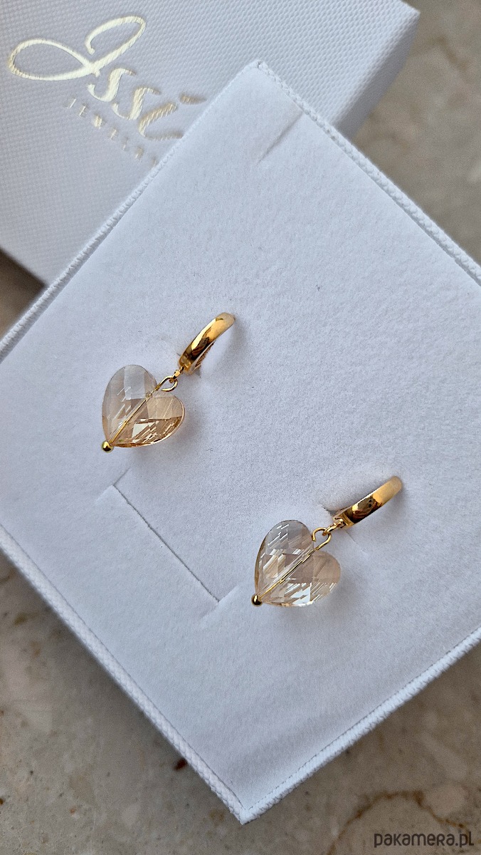 Kolczyki CHAMPAIGNE HEARTS- srebro 925 złocone 24K, Swarovski