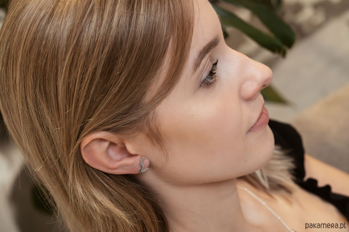 Abstrakcyjne kolczyki inspirowane pyszczkiem chihuahuy.