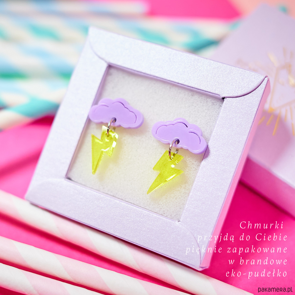 Oto piękne, lekkie kolczyki chmurki z błyskawicami.