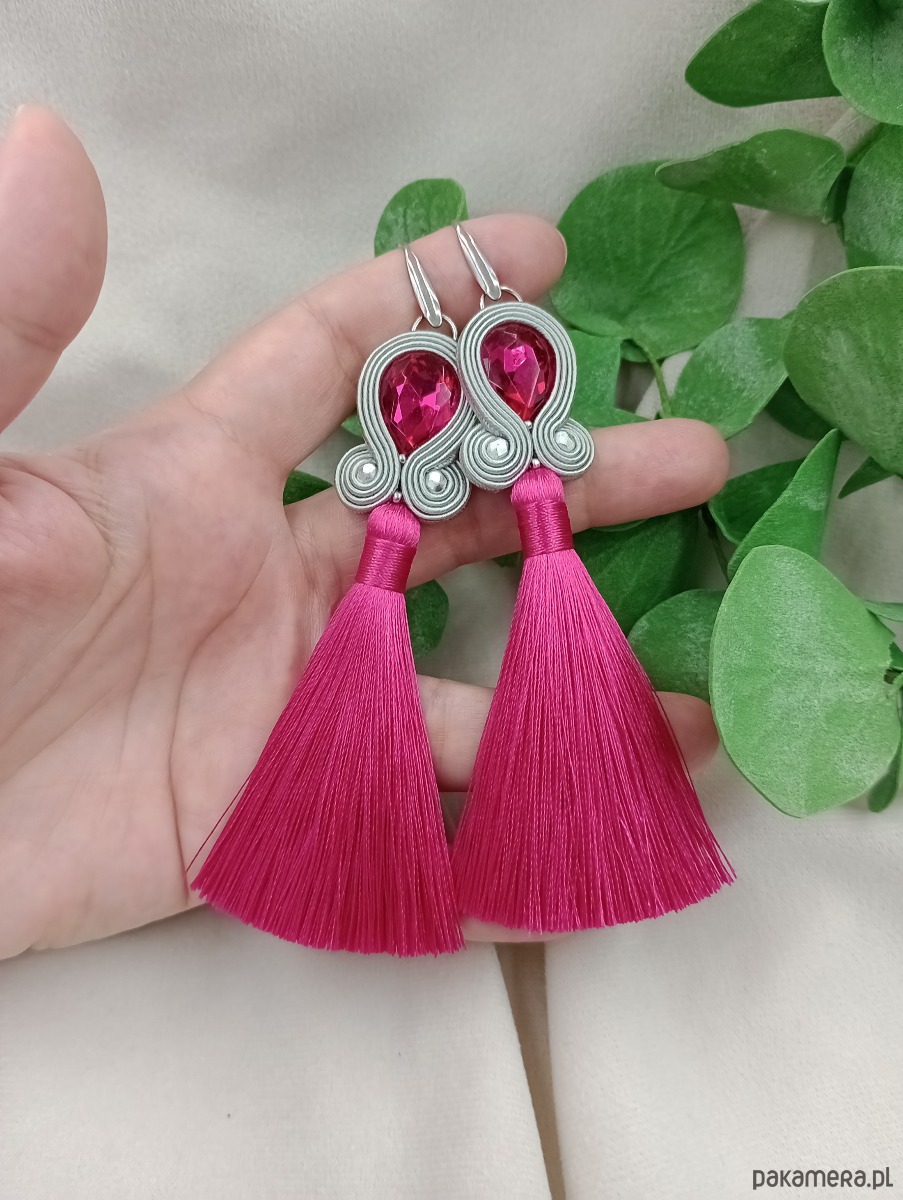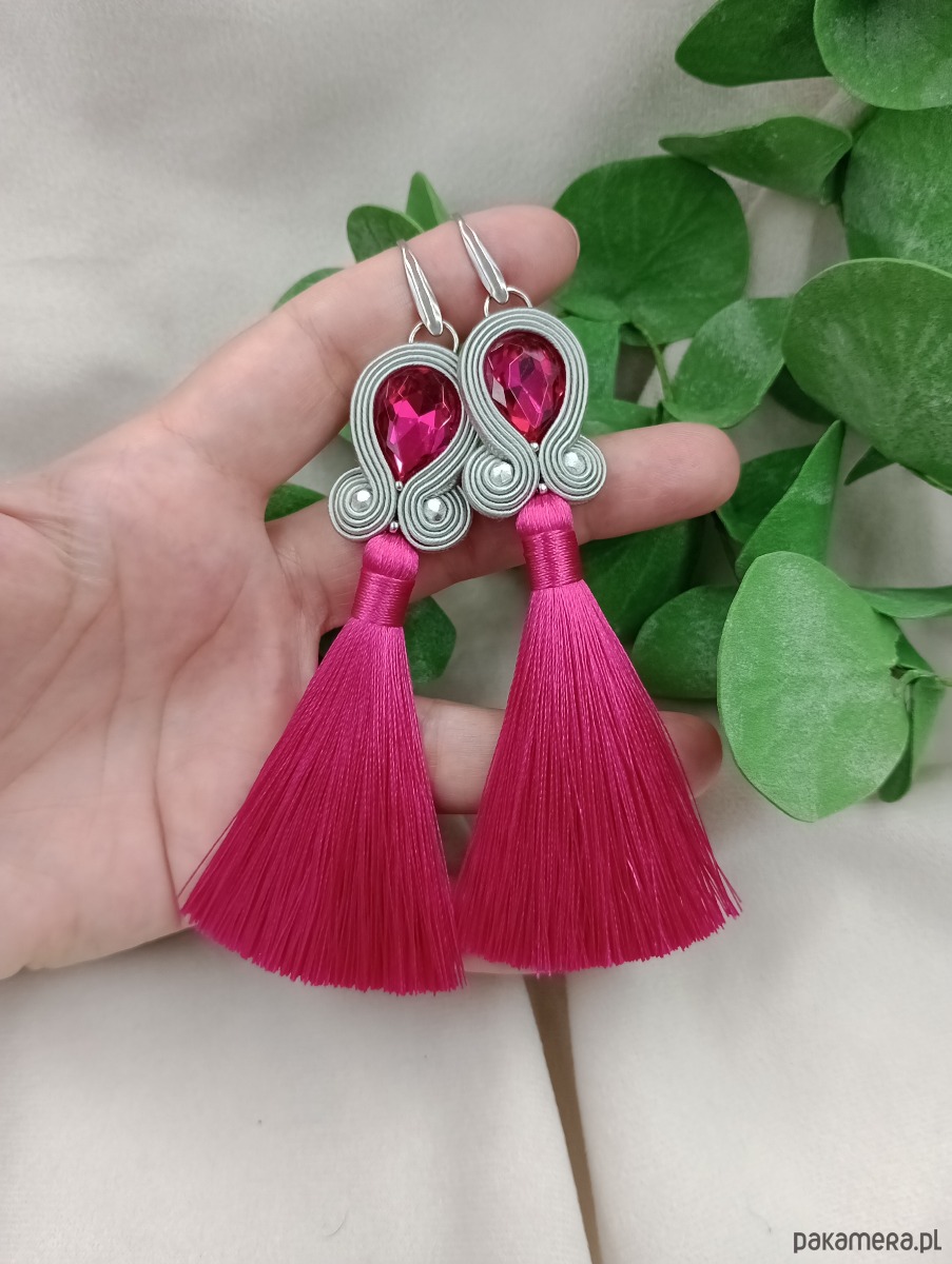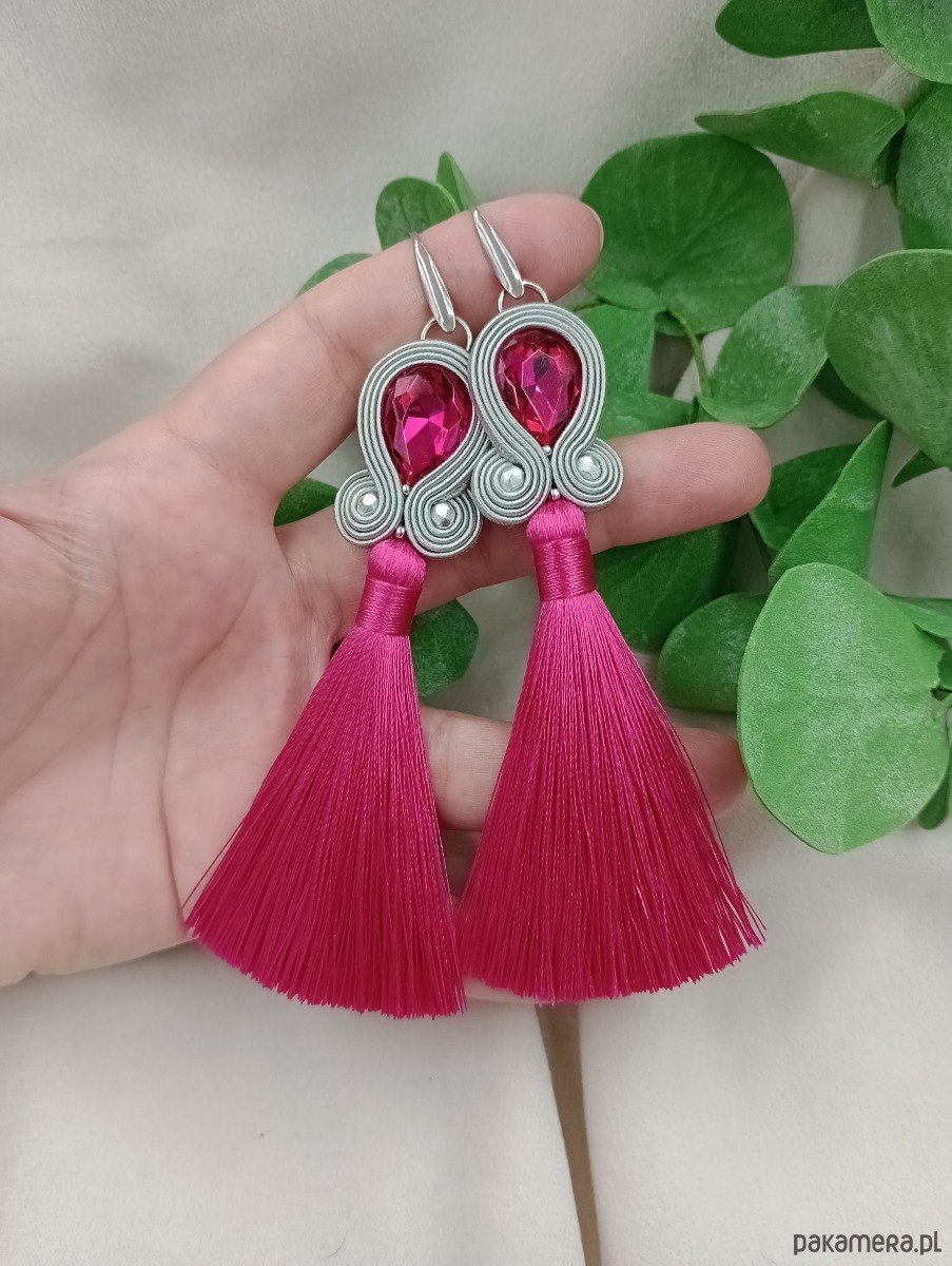 Ręcznie szyte, techniką soutache z włoskich jedwabnych sznurków, z kryształami o niesamowitym połysku w kolorze fuksji.