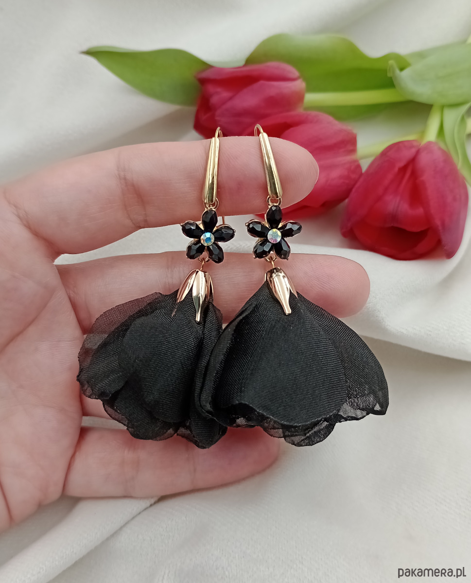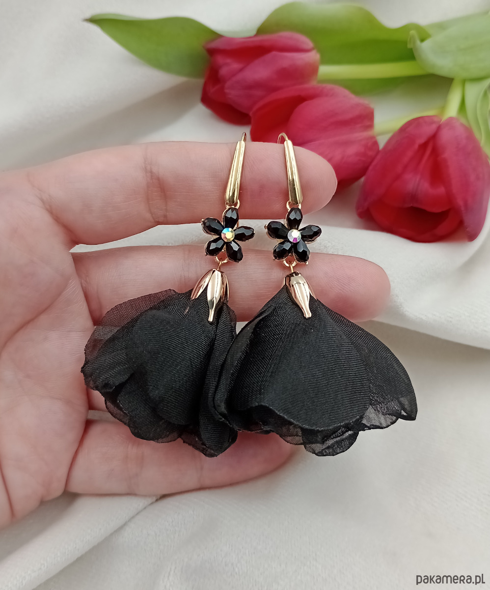Kolczyki kwiaty. Kolczyki czarne kwiaty, kolczyki na wesele.