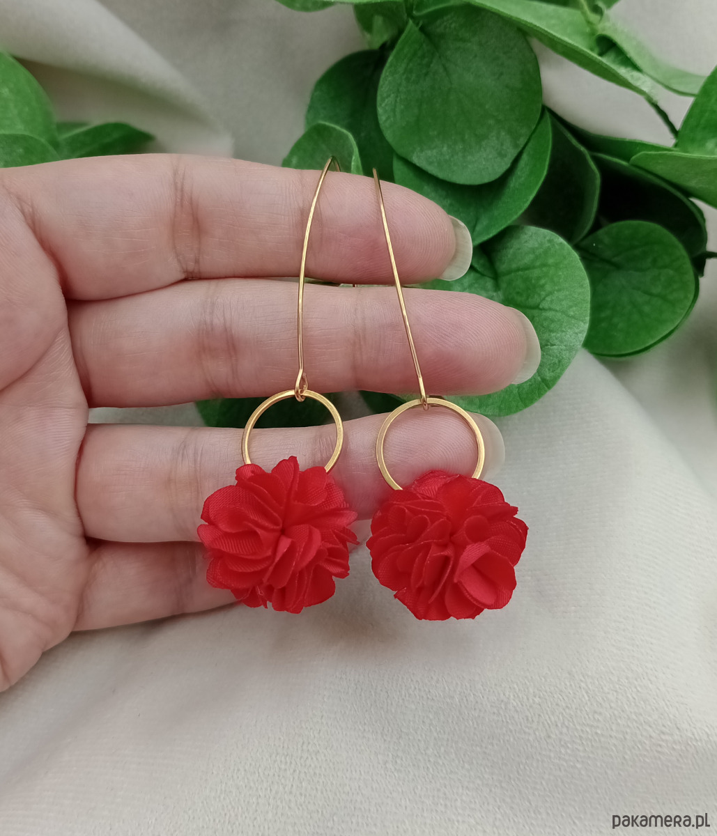 Kolczyki chwosty długie kolczyki czerwone kwiaty