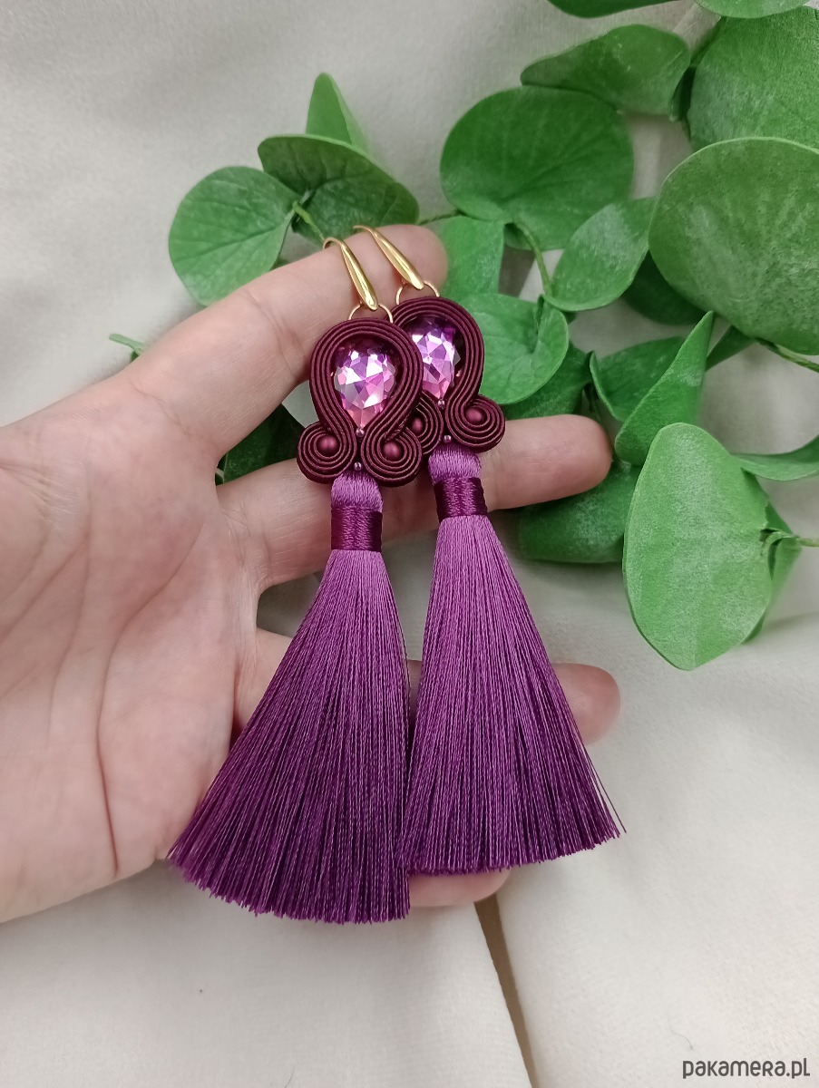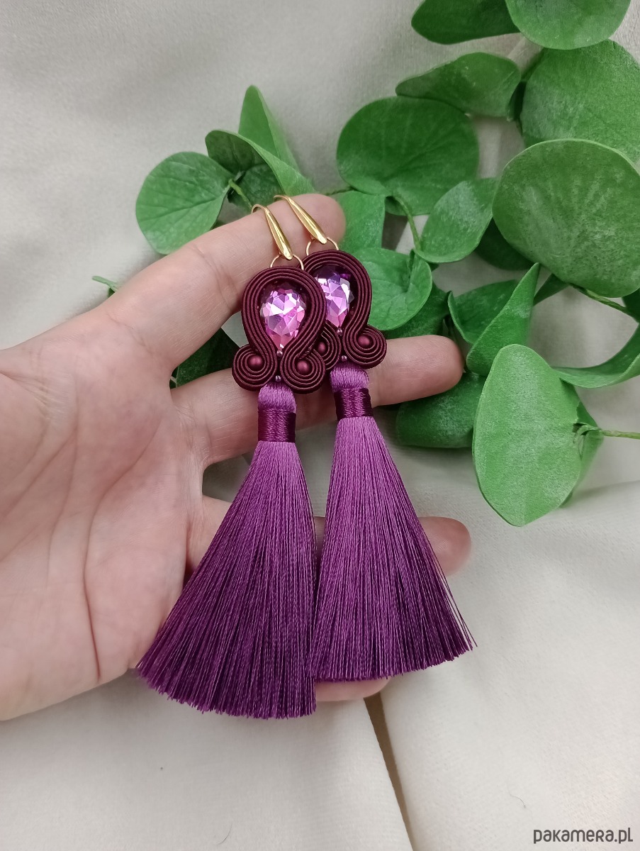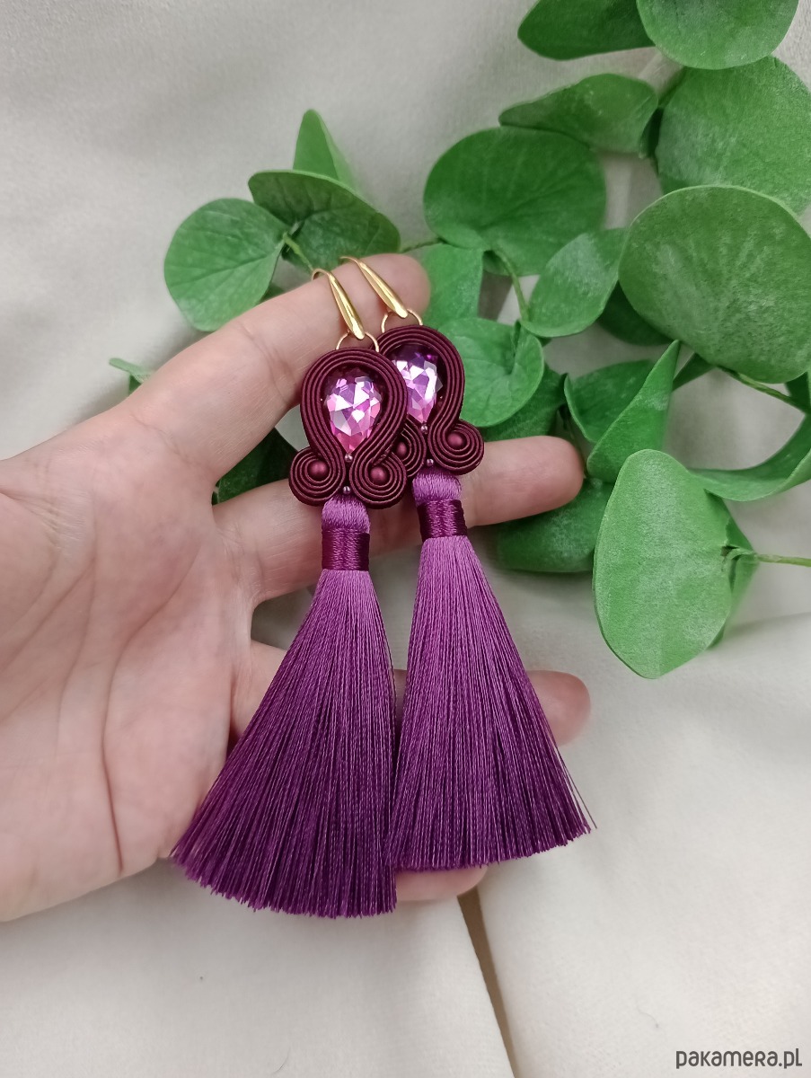 Kolczyki chwosty jagodowe bakłażanowe wrzosowe śliwkowe