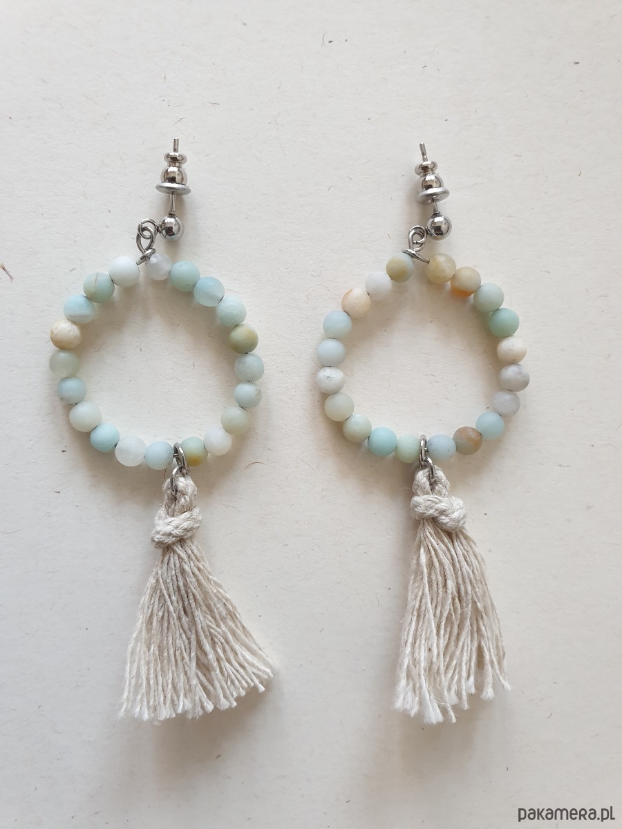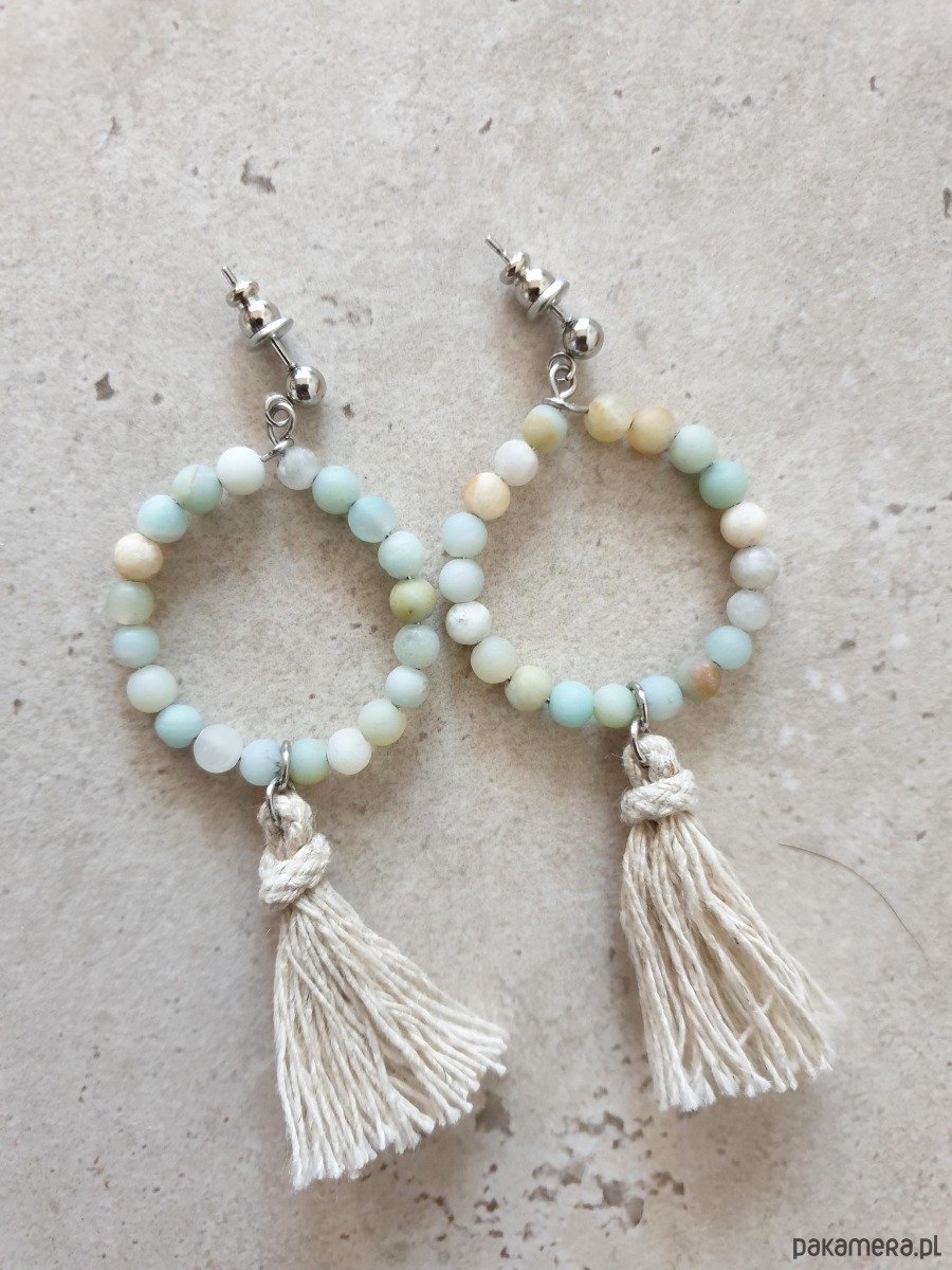 Kolczyki chwosty WĘZŁY kółka amazonit