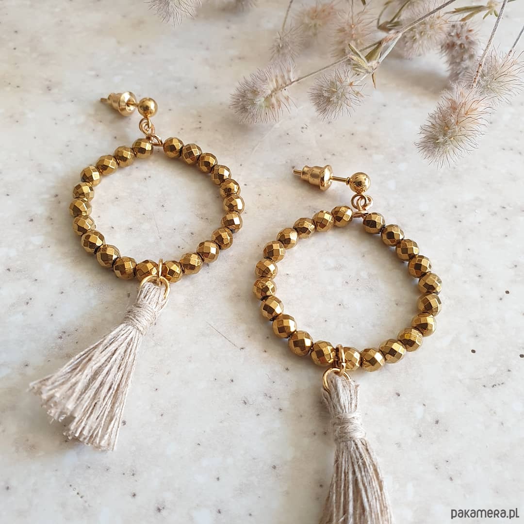 Kolczyki chwosty WĘZŁY kółka hematyt złoty