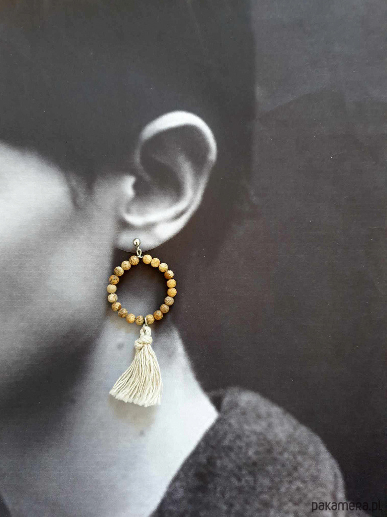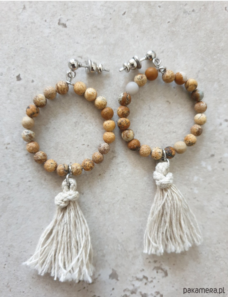 Kolczyki chwosty WĘZŁY kółka jaspis obrazkowy