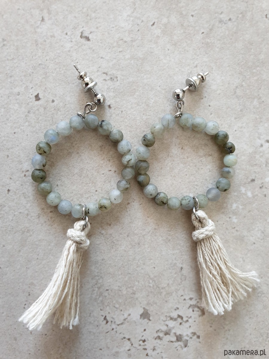 Kolczyki chwosty WĘZŁY kółka labradoryt