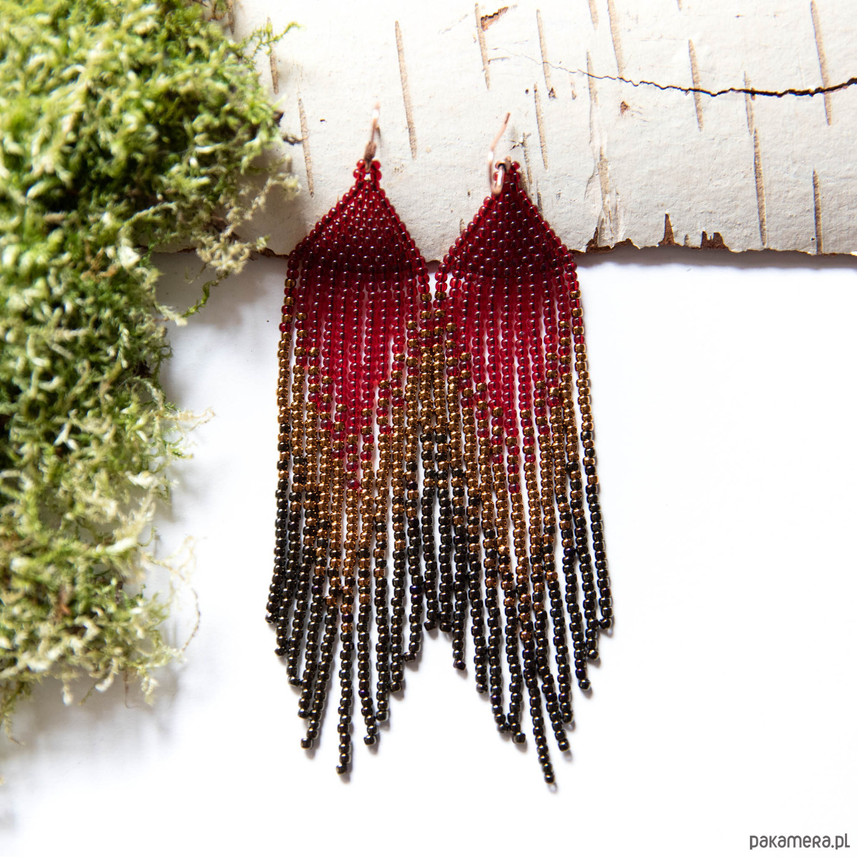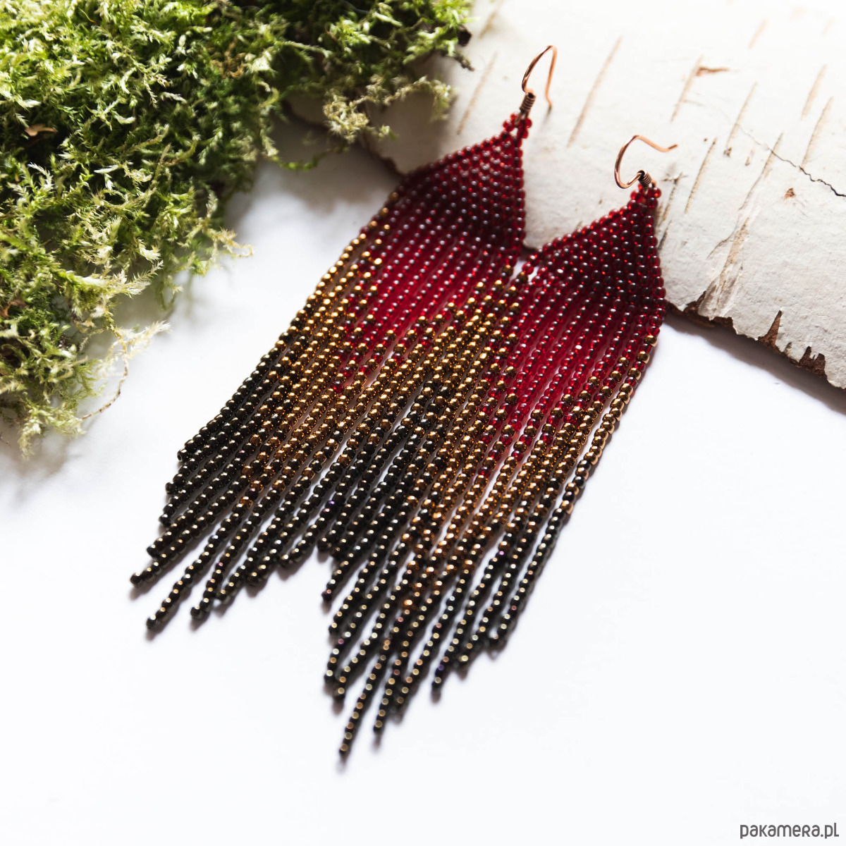 Kolczyki koralikowe cieniowane kolorami: czerwonego wina, miedzi, brązu