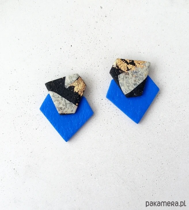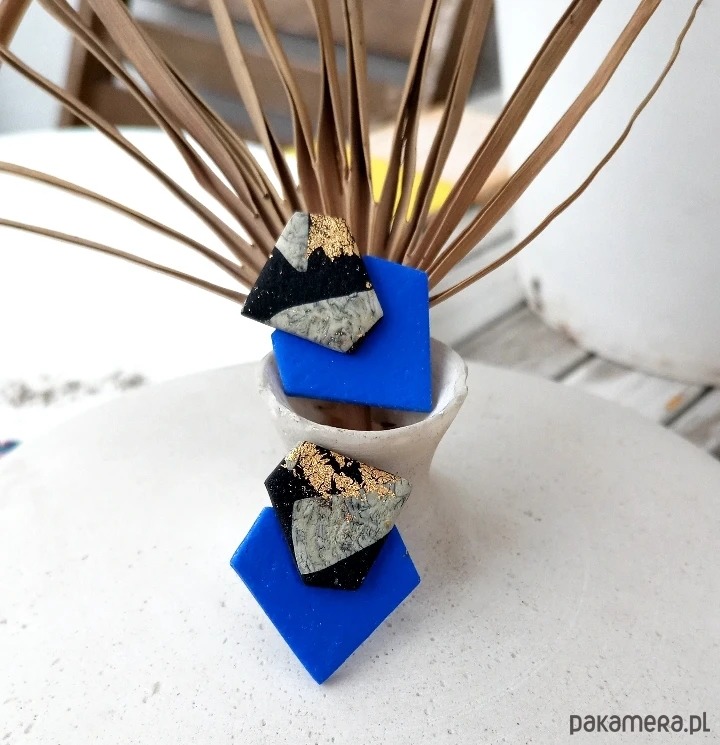 Oryginalne kolczyki wykonane ręcznie z dbałością o szczegóły z profesjonalnej glinki polimerowej, wypalane w piecu i szlifowane w domowej pracowni. Każda para kolczyków jest niepowtarzalna i wyjątkowa. Kolczyki są bardzo lekkie i wygodne, nie obciążają płatka ucha i przyciągają spojrzenia. Zapinane na sztyft ze stali chirurgicznej.