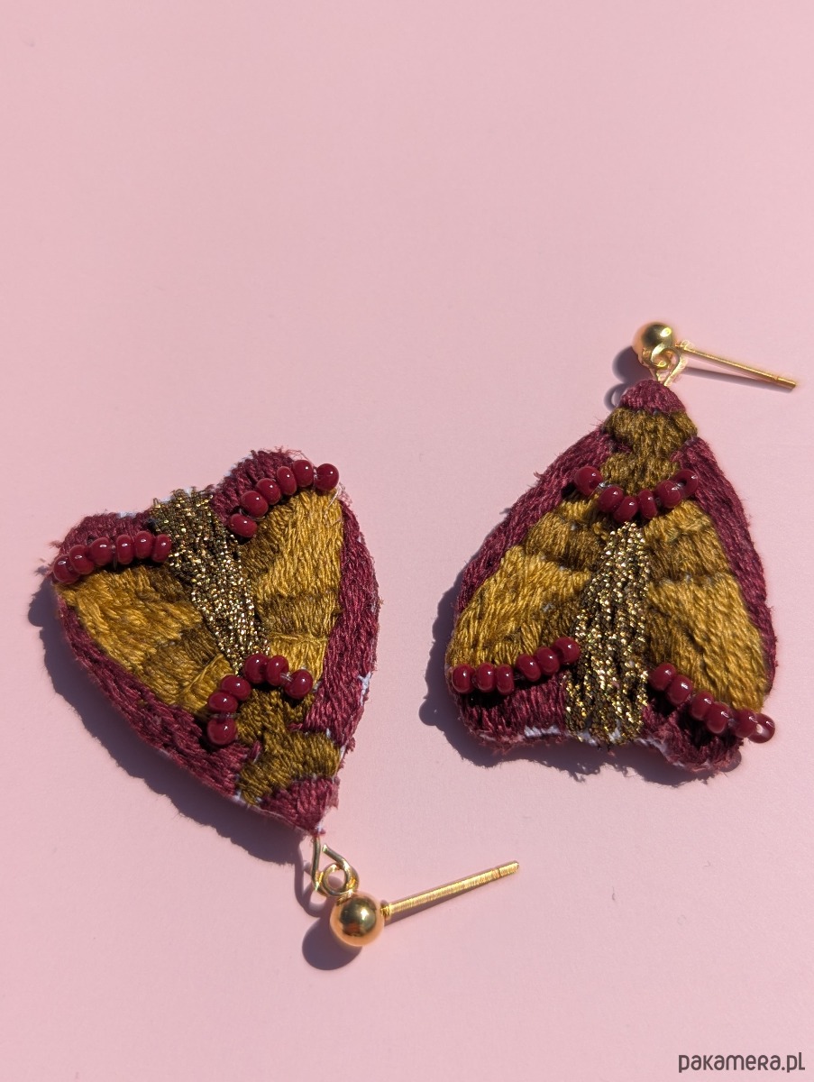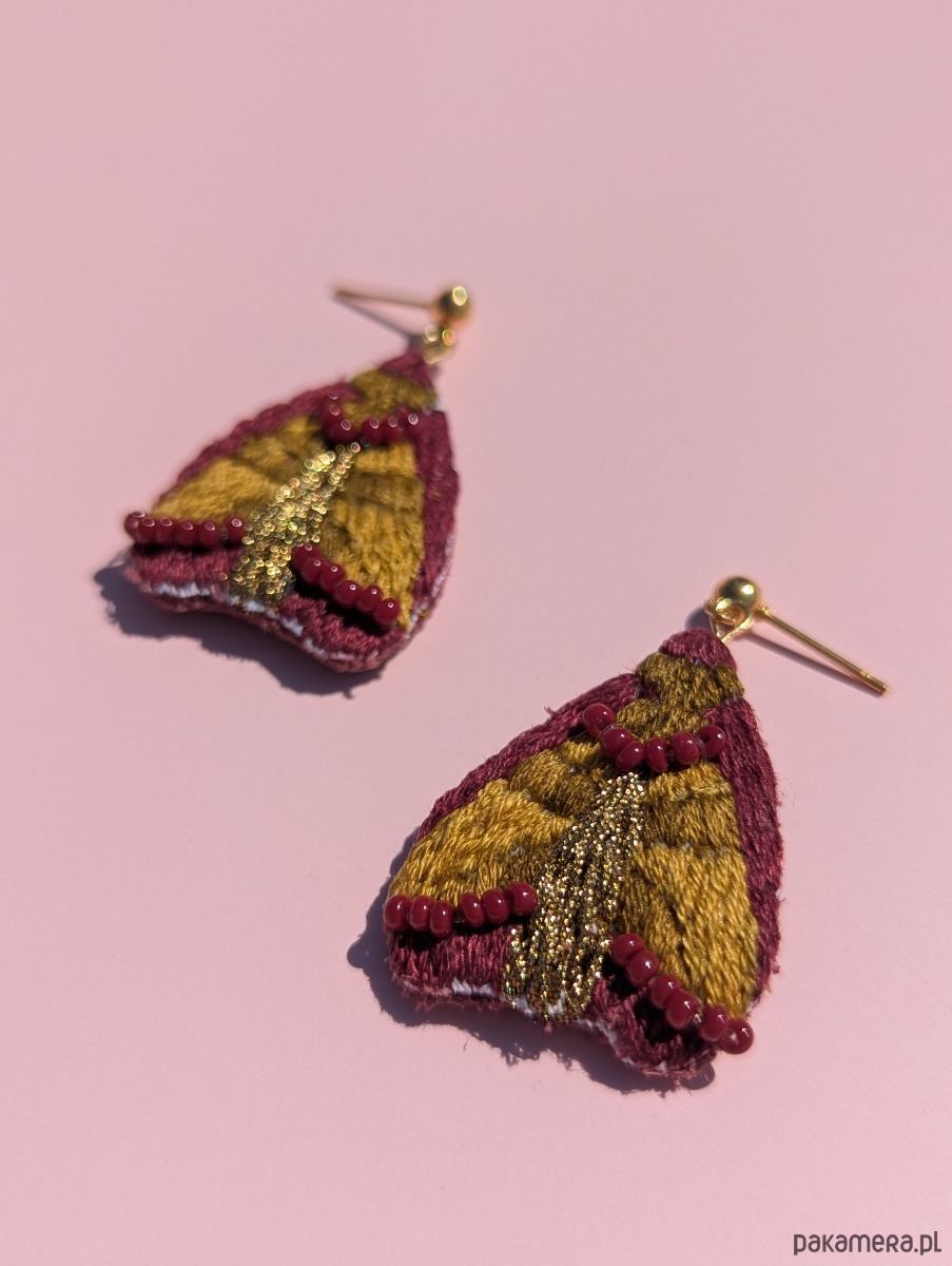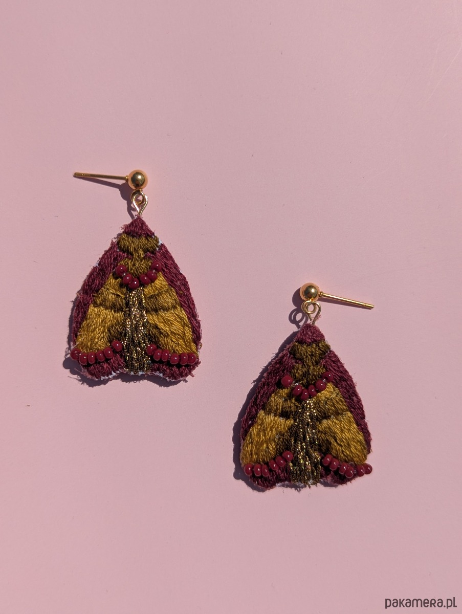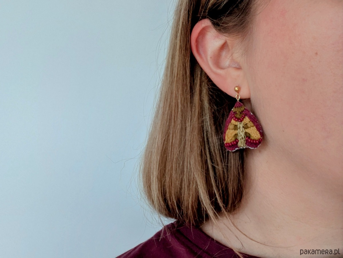 Dodaj odrobinę elegancji do swojej stylizacji dzięki oryginalnym, ręcznie haftowanym kolczykom z motywem ćmy.