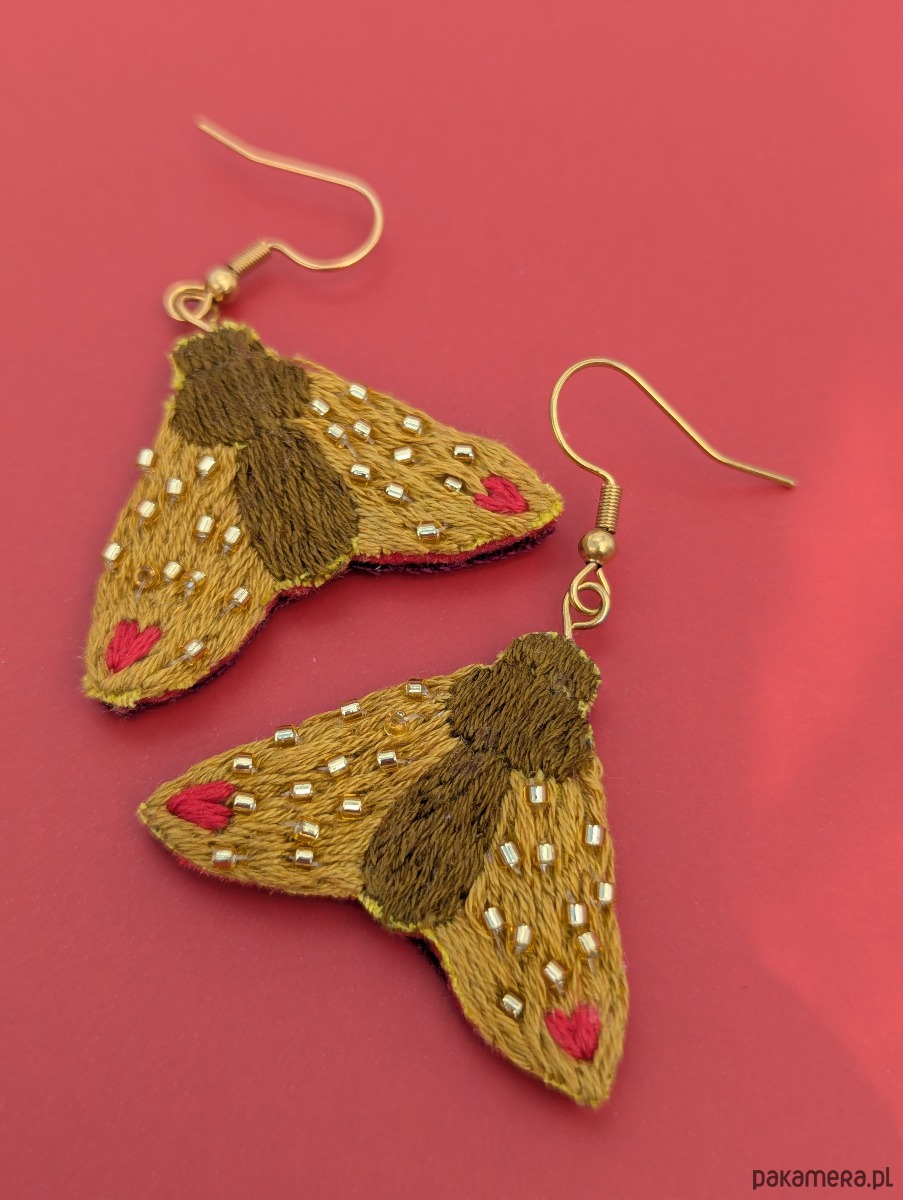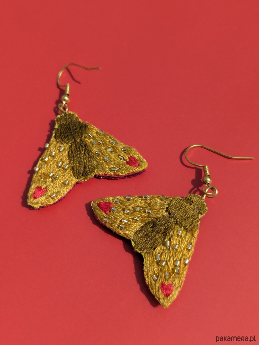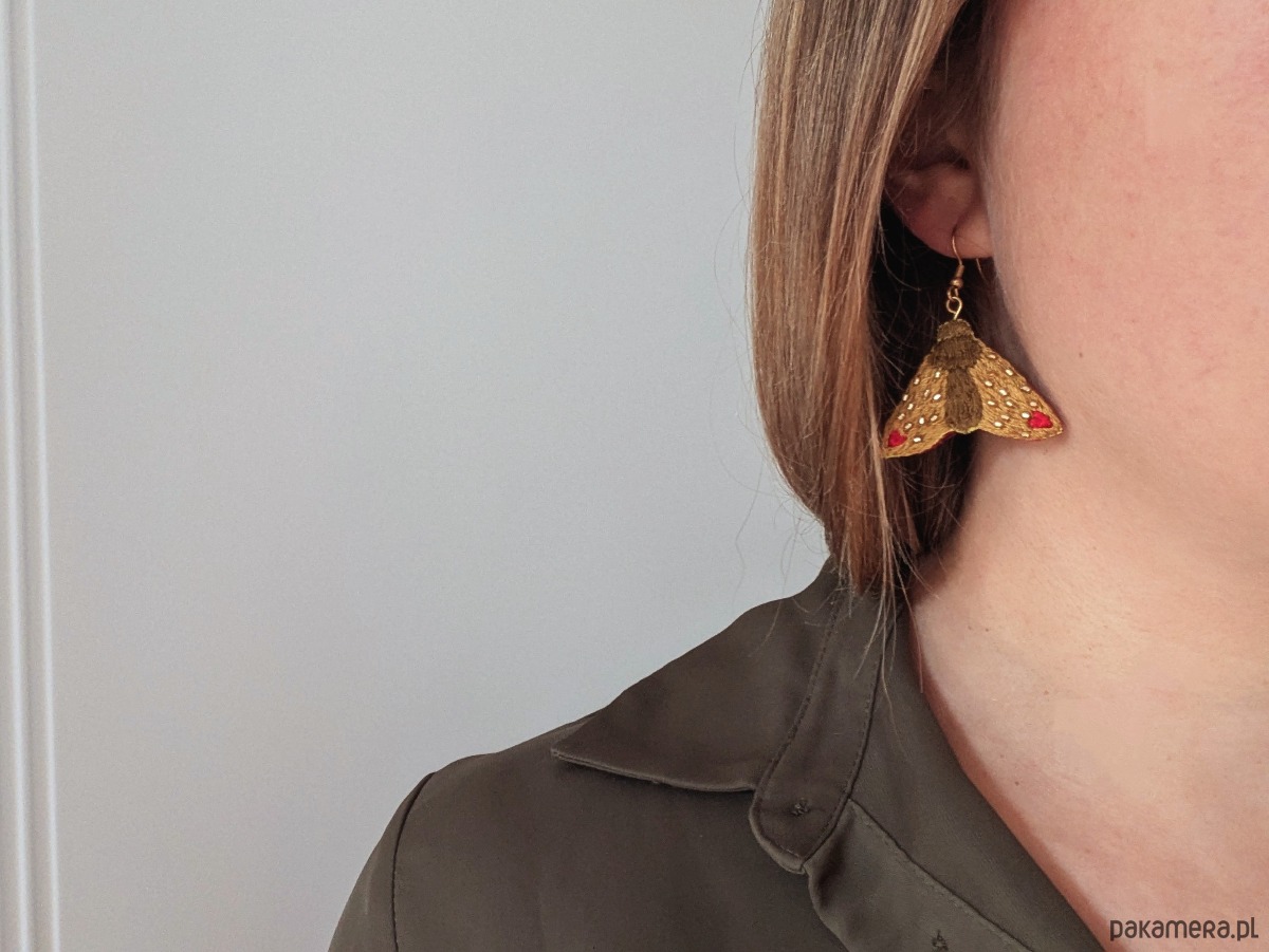 Idealne na co dzień – te lekkie, ręcznie haftowane kolczyki z motylem (lub ćmą – nazwij je jak chcesz:)) będą pasować do wielu stylizacji i z pewnością przyciągną uwagę!