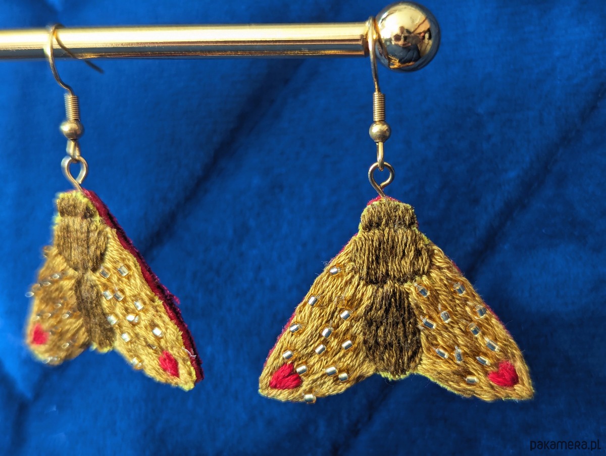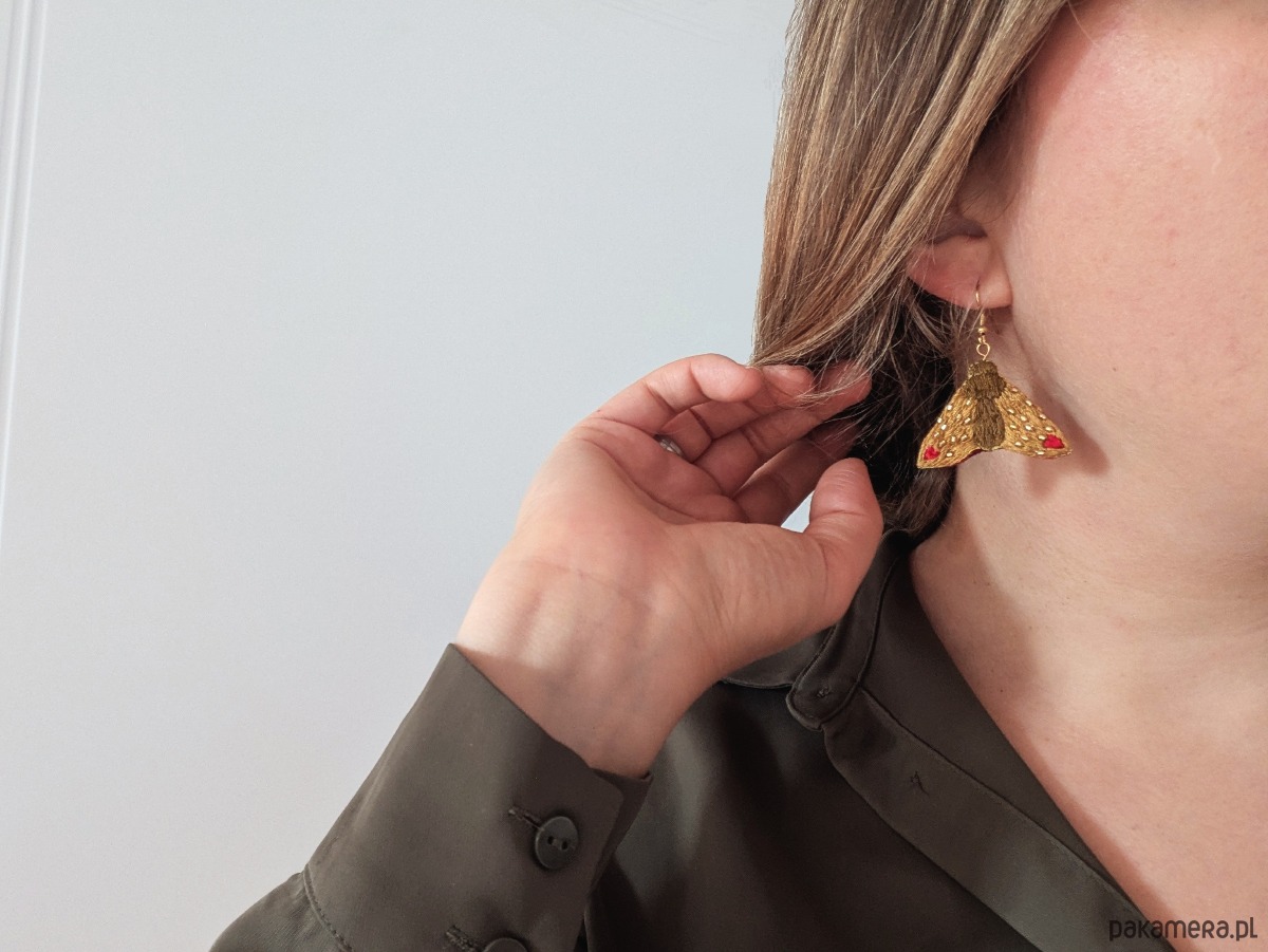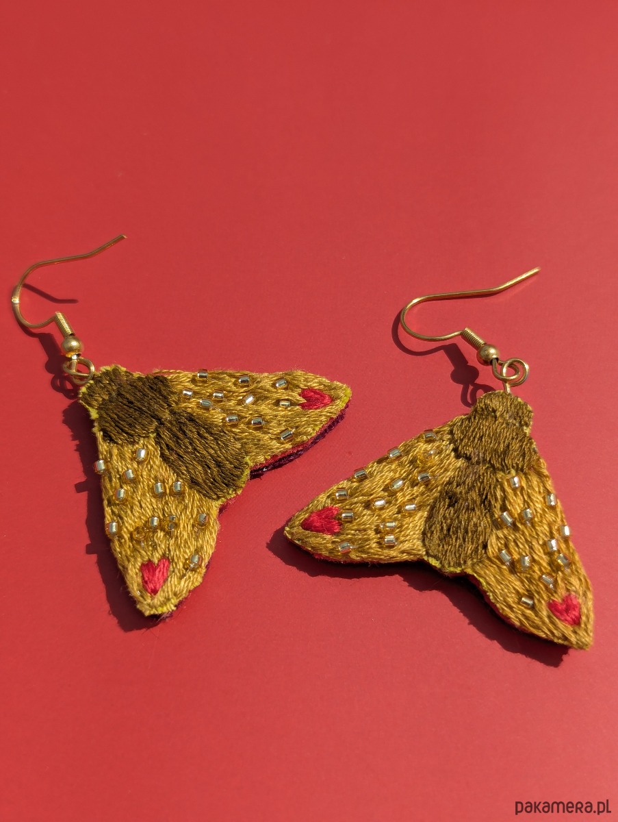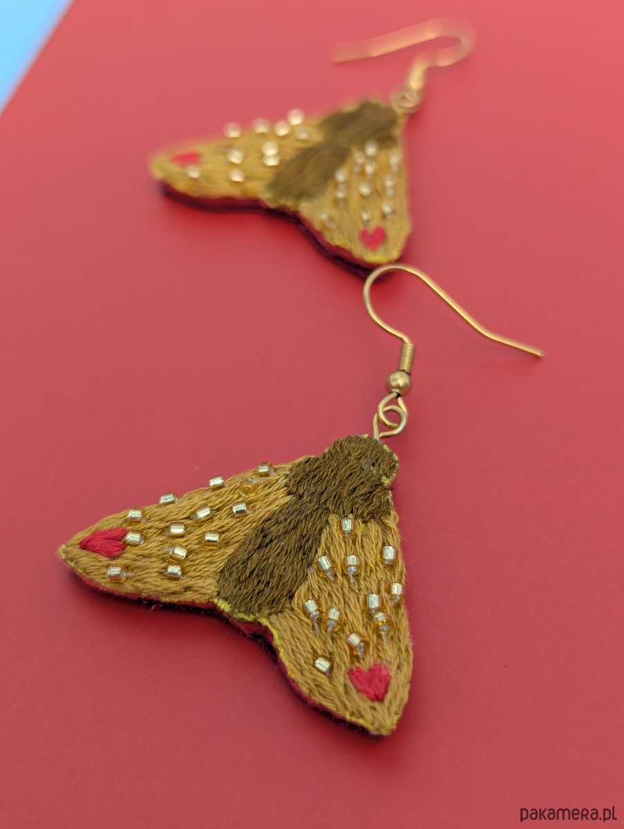 Idealne na co dzień – te lekkie, ręcznie haftowane kolczyki z motylem (lub ćmą – nazwij je jak chcesz:)) będą pasować do wielu stylizacji i z pewnością przyciągną uwagę!