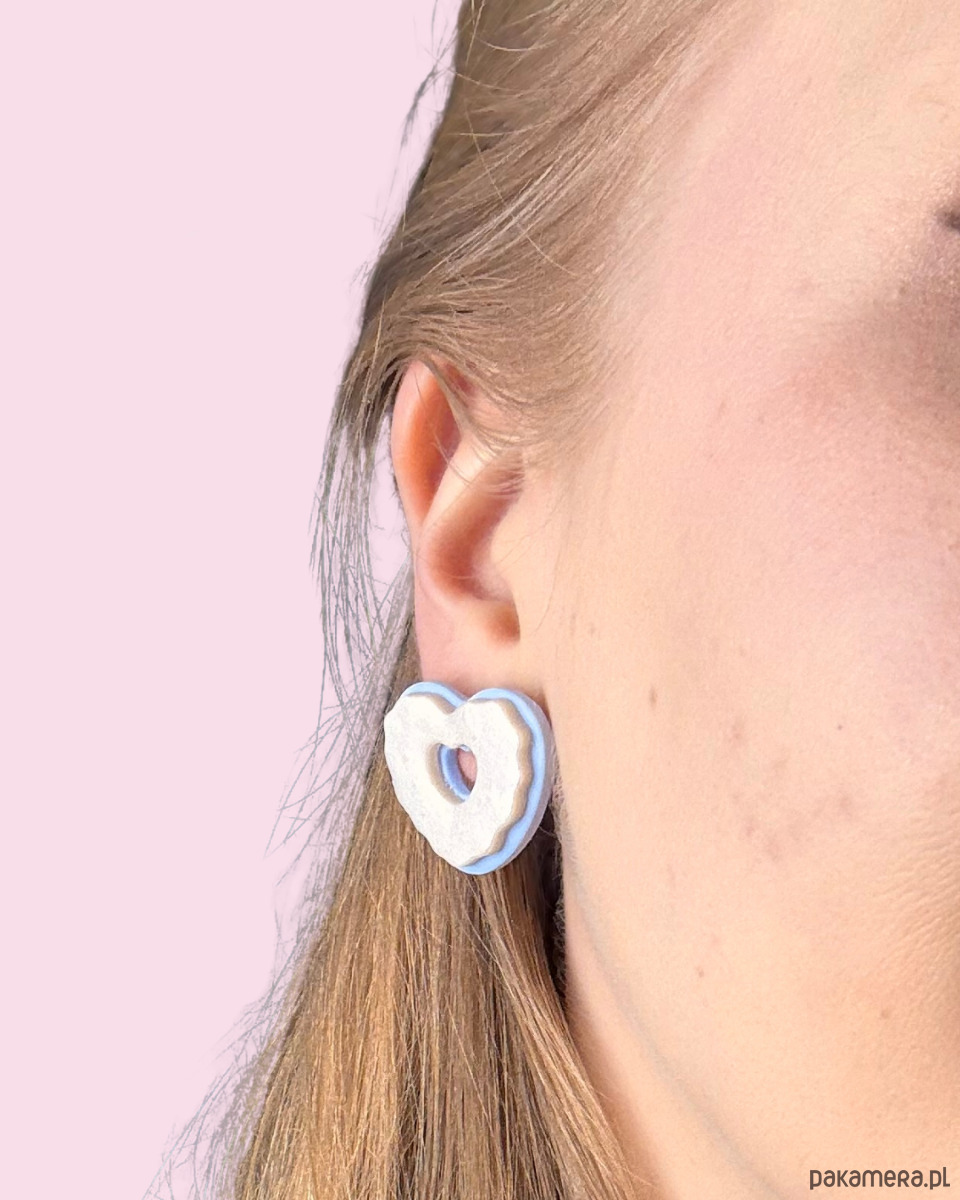Kolczyki COOKIE HEART - perłowy + błękit