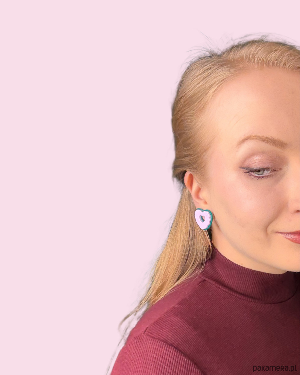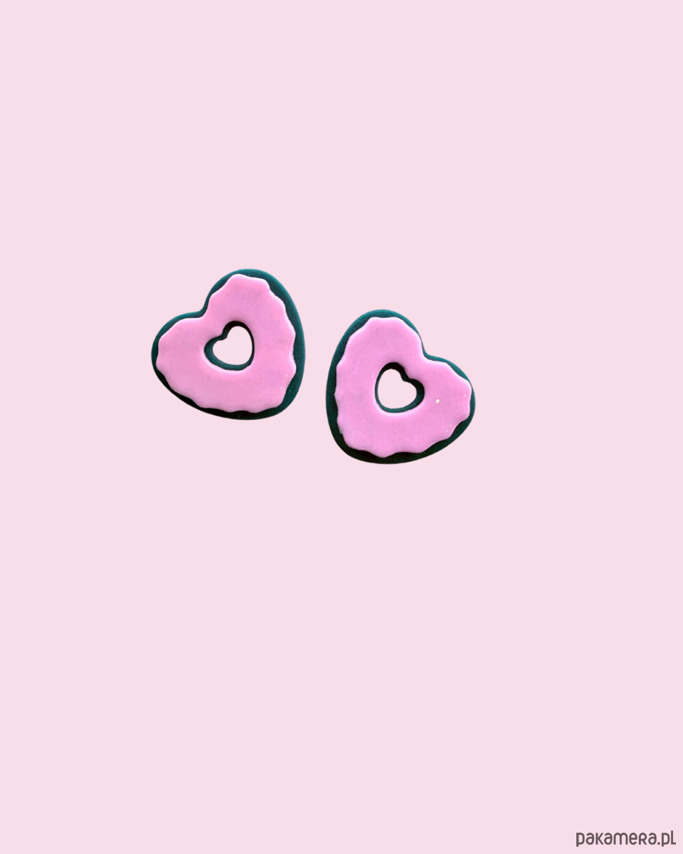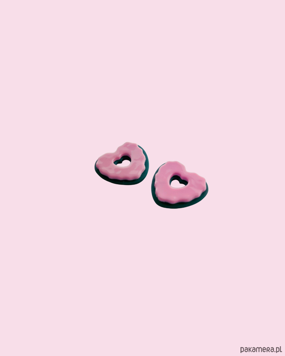 Kolczyki COOKIE HEART - zielony + róż